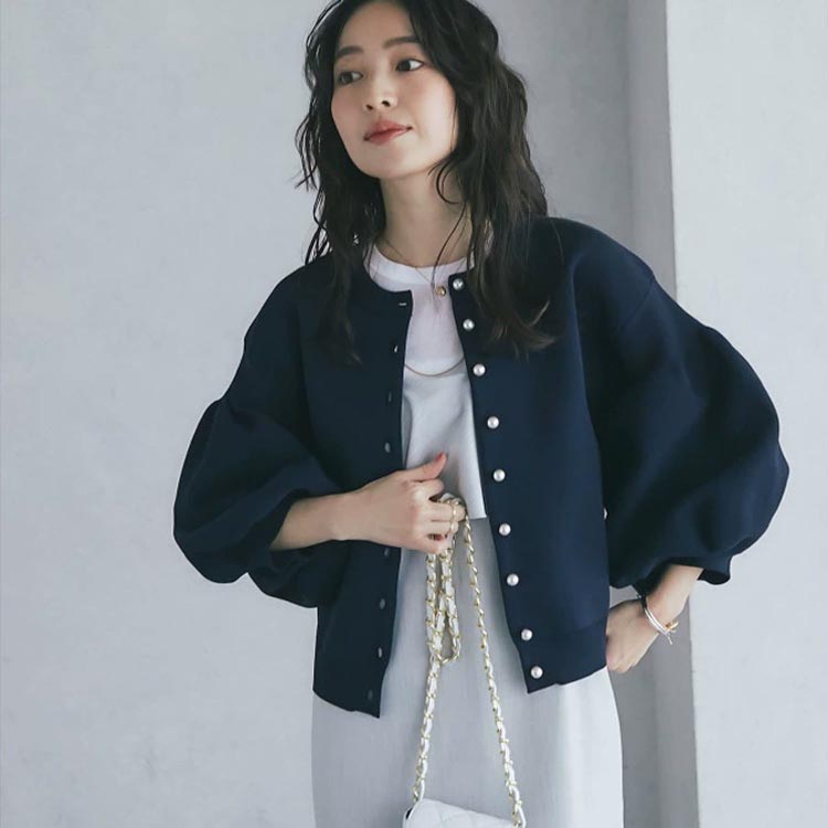ぽわんとした立体的なバルーンスリーブがフエミニンなアイテム。