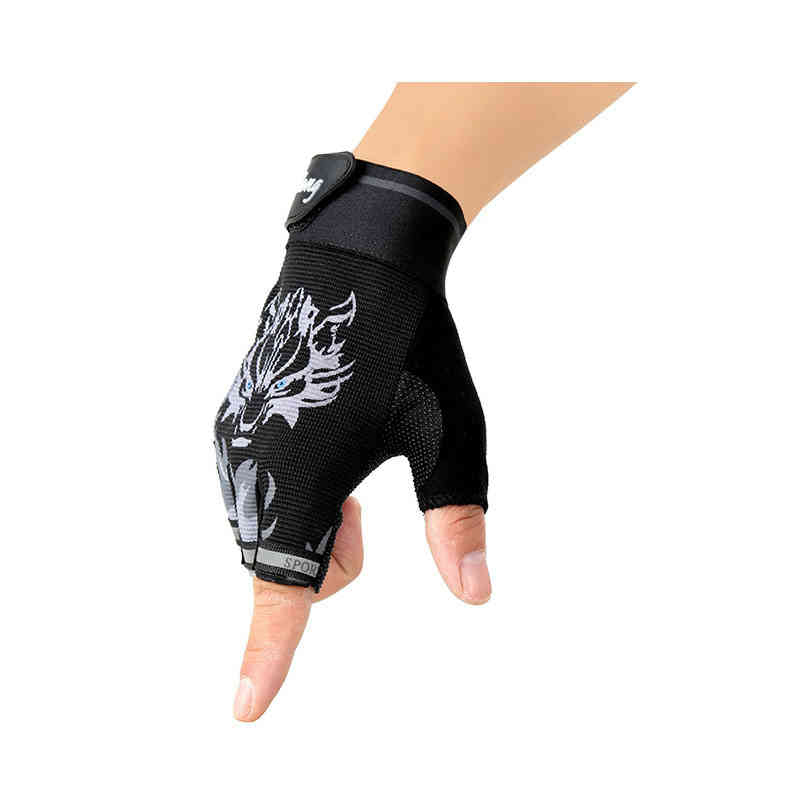 子供手袋 スポーツグローブ 半指 スマホ対応 指切り手袋 メッシュ 薄型 手袋 夏 通気性よい 怪我防止 滑り止め 男の子 女の子 ジュニア カッコイイ 狼 ハーフフィンガー アウトドア 自 イラスト