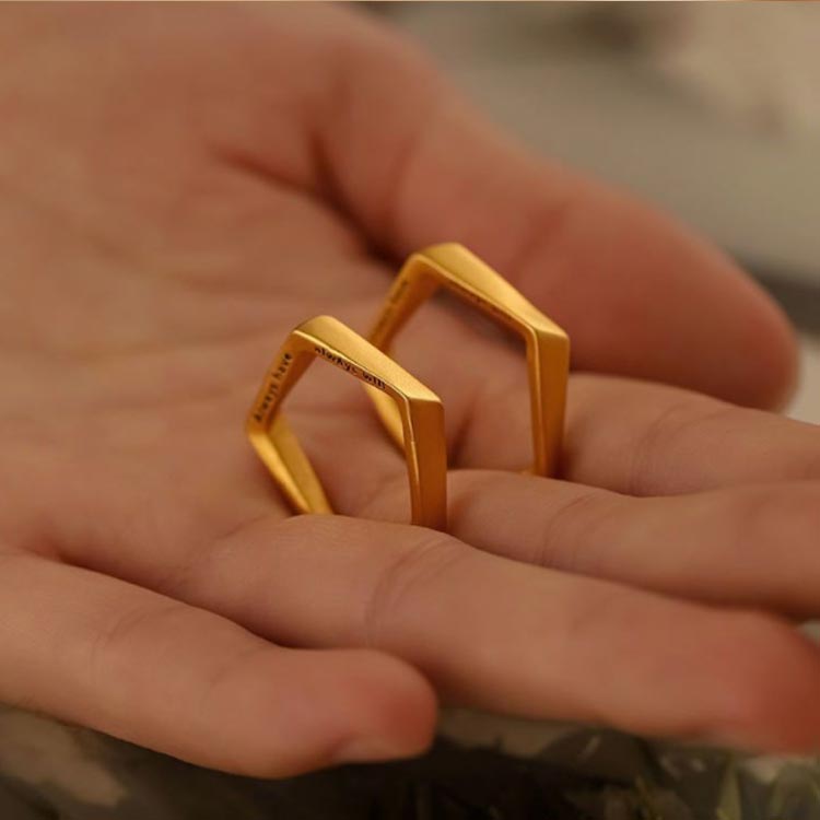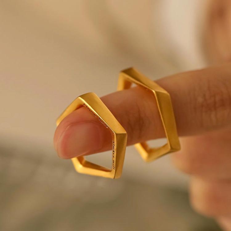 シルバーリング シンプル マット 五角形 変形 指輪 人差し指 リング 925シルバー ゴールドメッキ加工 5~10号 プレゼント プチギフト 普段使い レディース