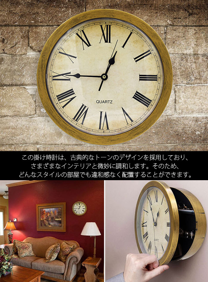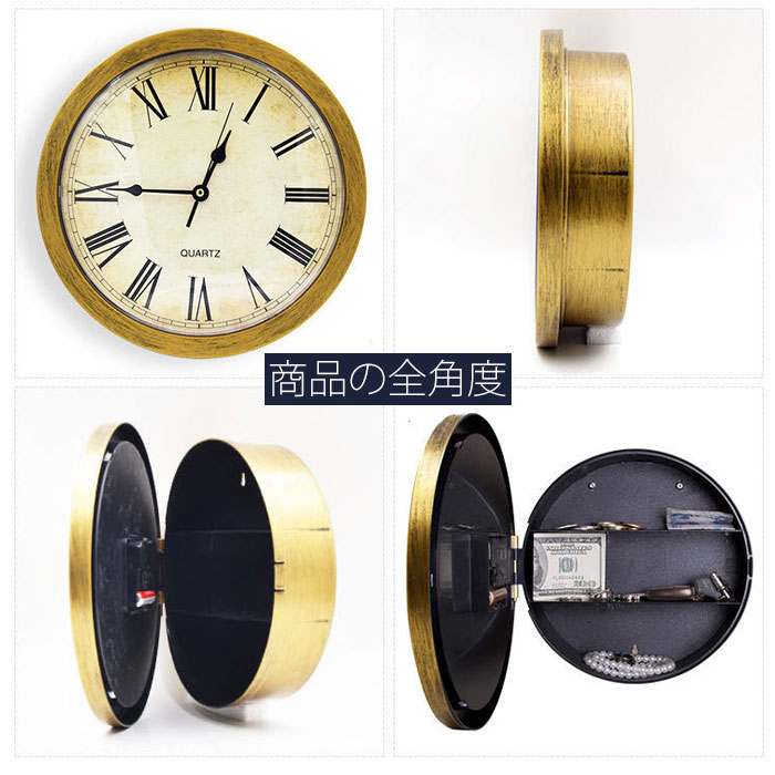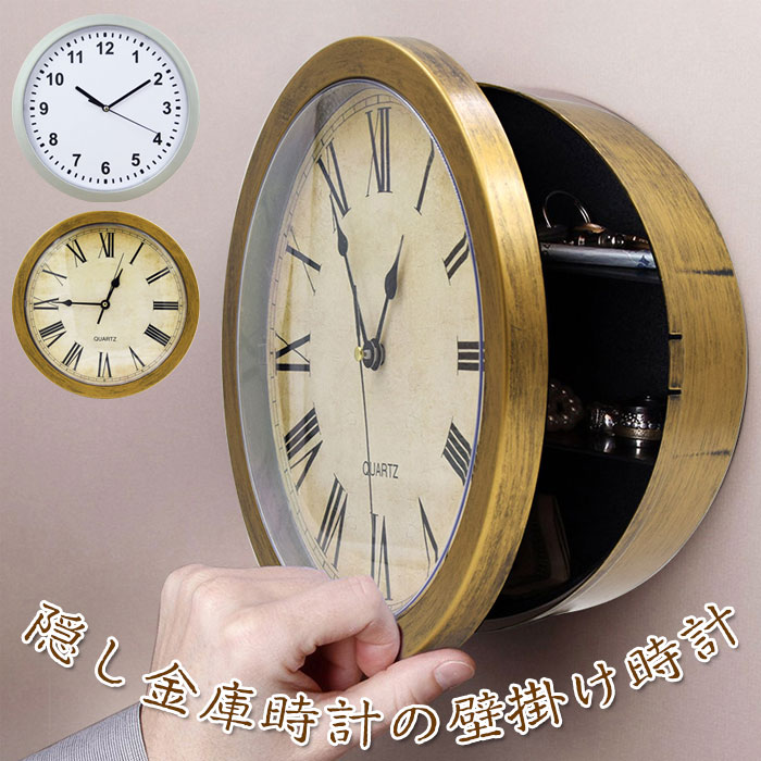 掛け時計 隠し収納ケース 隠し金庫時計 ゴールド シルバー