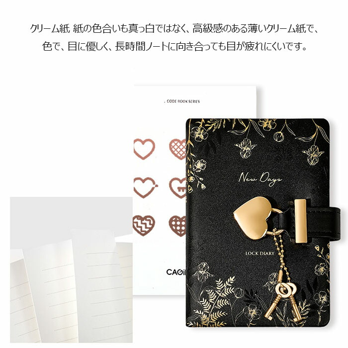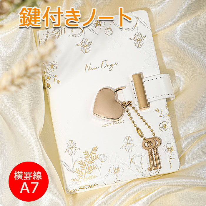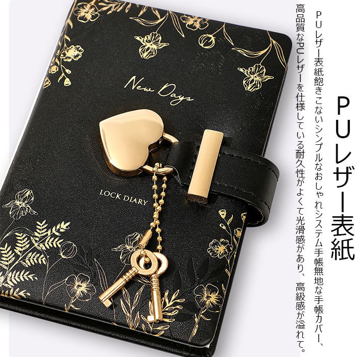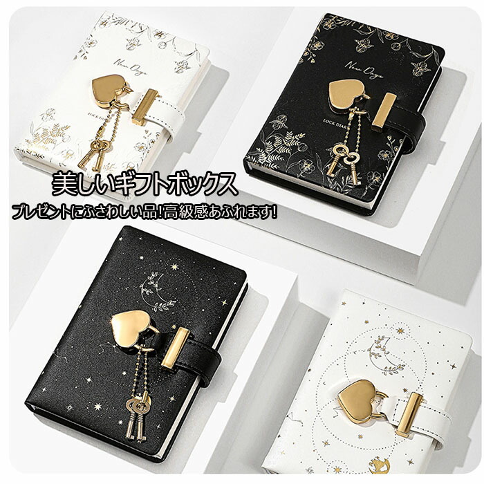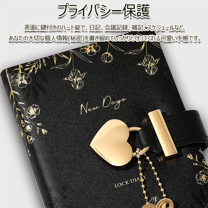 記帳 鍵付きノート かわいい A7 手帳 メモ帳 秘密ノート 日記 記録手帳 ハート型 システム手帳 上質紙 横罫線 革製カバー ギフトボックス 防水 スケジュール帳 文房具 中学生 高校生 女の子