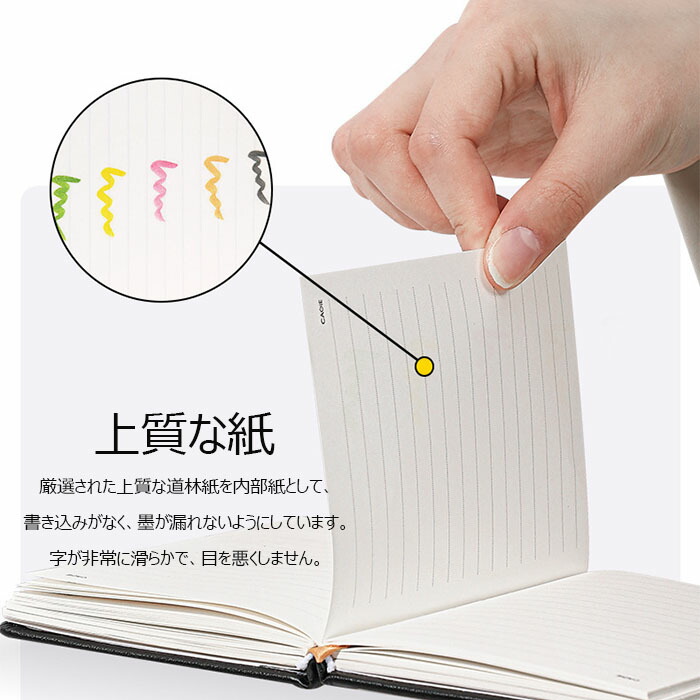 7、上質紙で作られた内側は、滑らかで書きやすいです。それに、横罫線付き、授業ノート、学習ポイント、メモ、課題、料理のレシピ、生活記録、日記、誰にも言えないこと、自分の気持ちなど様々な内容をキレイに書き留められます。