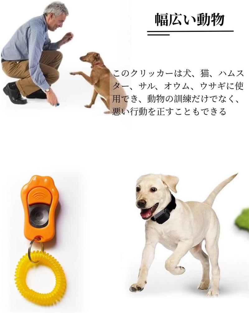 【用途】、動物の訓練だけでなく、悪い行動を正すこともできる。犬トレーニングクリッカーだけでなく、猫、鳥、馬などにも適しています。