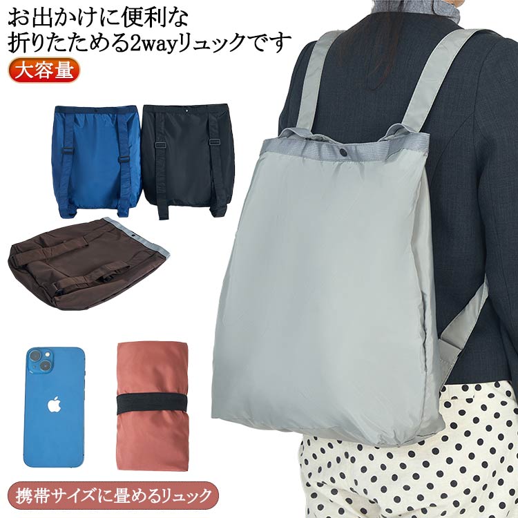 持ち運び 2way 大容量 リュク 軽量 折りたたみ リュックサック バッグ リュック コンパクト レディース 折り畳み エコリュック 手提げ ポケッタブル 折りたたみリュック 夏 エコ 手提げバッグ