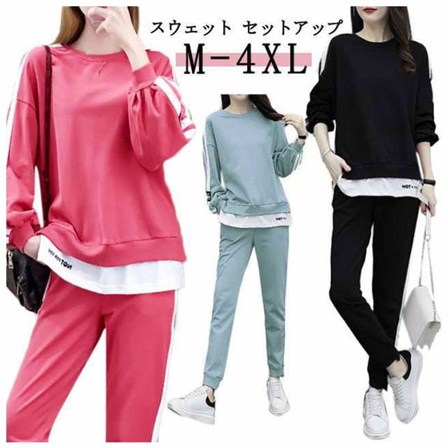 スウェット セットアップ ジャージ 長 スポーツウェア アクセサリー ジャージ レディースジャージ セットアップ 人気 ピンク ブルー ブラック M L XL 2XL 3XL 4XL