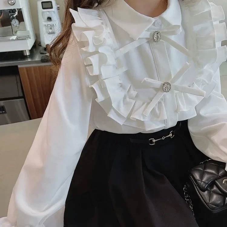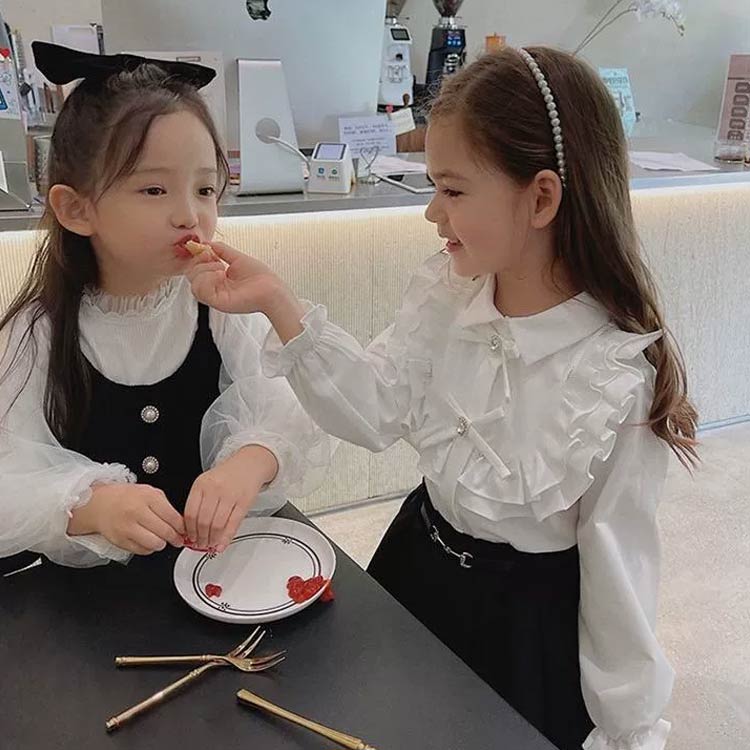 トップス シャツ 白 子供服 花柄 130 刺繍 女の子 Tシャツ 春秋着 フォーマルシャツ シャツブラウス 長袖 立ち襟 ブラウス 卒園式 卒業式 入学式 ドレス用スーツ