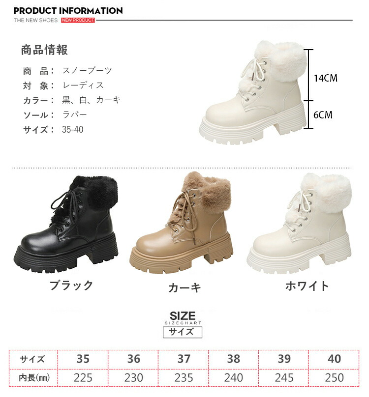 スノーブーツ レディース 北海道 滑ら レディース靴 ブーツ ムートンブーツ 続々入荷中 ブラック ホワイト カーキ 35(22.5cm) 36(23cm) 37(23.5cm) 38(24cm) 39(24.5cm) 40(25cm)