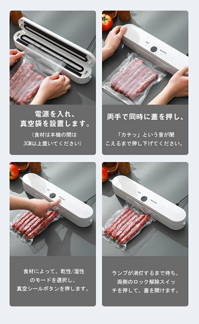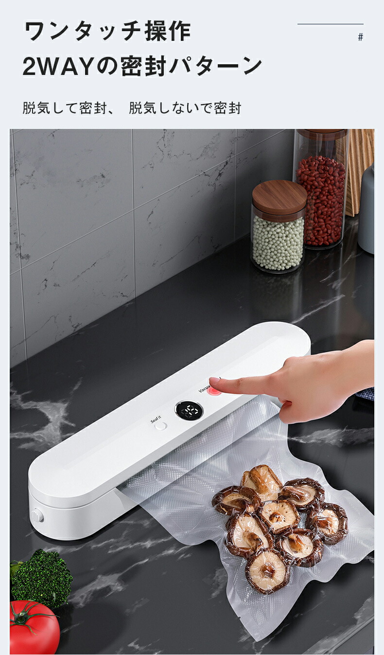 真空パック機 電子レンジ対応 ボイル対応 小型 シーラー 連続シール可能 フードシーラー 機 家庭用 業務用 真空包装機 真空調理 鮮度長持ち 真空包装機 簡単操作 専用パック袋付き 日本語取扱説明書付き PSE認証済み ブラック ピンク ホワイト