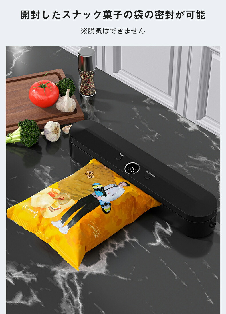 家庭用 コンパクト 真空パック機 シー ブラック 白い