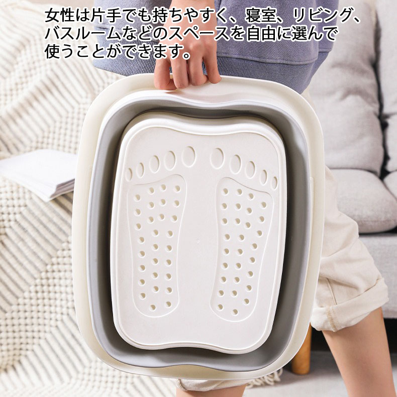 この折りたたみ式フットバスは、手軽に自宅でリラックスタイムを楽しむことができます。