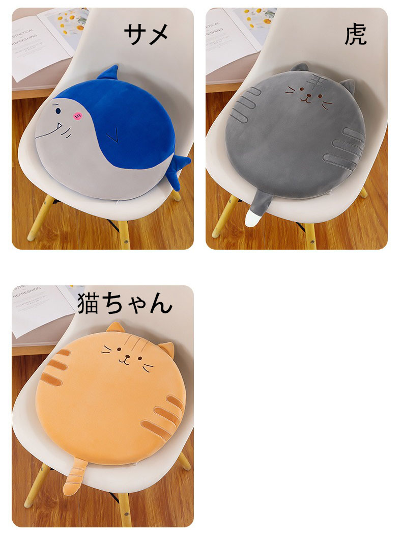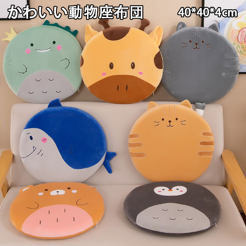 座布団 クッション 椅子用 丸 40× 虎 熊ちゃん 猫ちゃん キリン サメ 恐竜 ペンギン