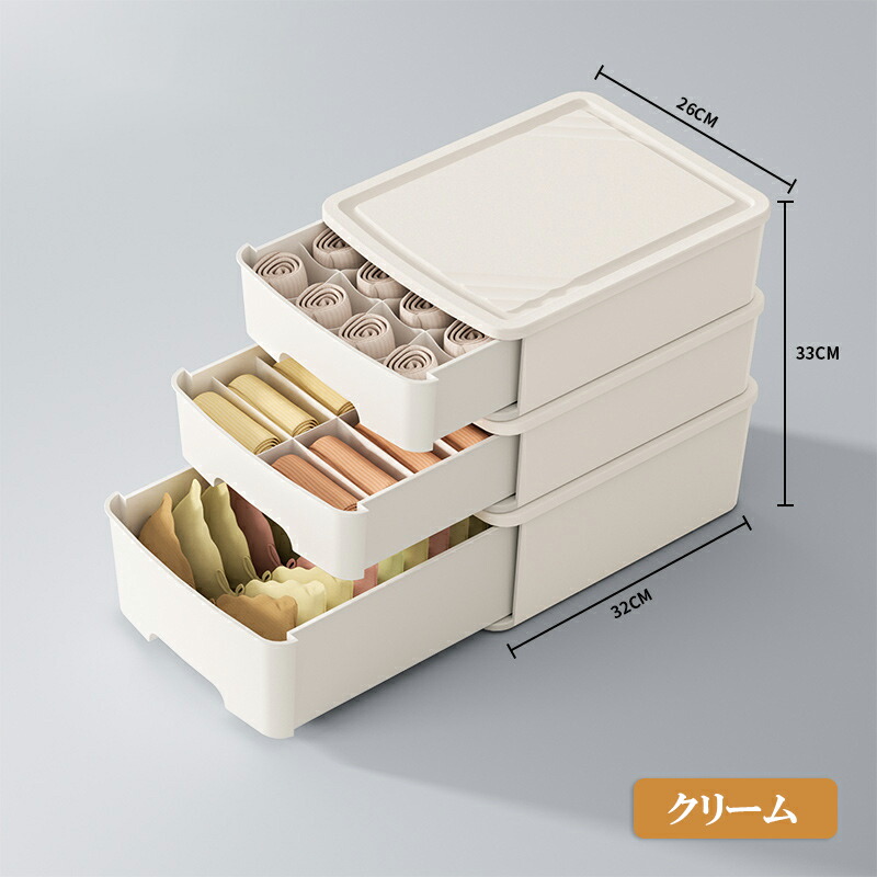 3点セット 下着収納ケース 収納ボック クリーム ホワイト