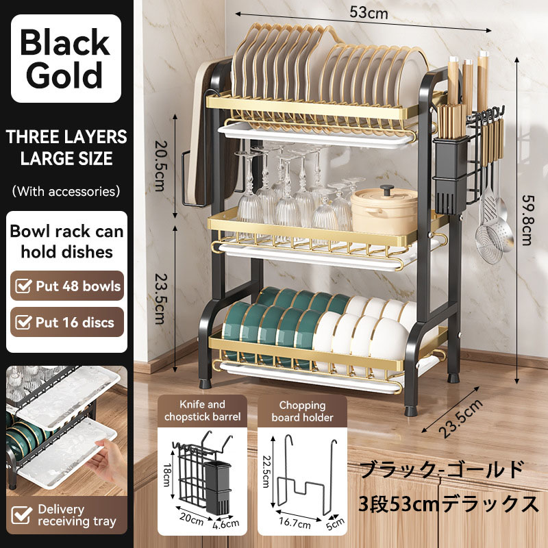 食器 水切りラック 2段 3段 食器乾 キッチン用品 食器 調理器具 続々登場 ブラック ブラック-ゴールド グリーン-ゴールド 2段53cm 2段53cmデラックス 3段53cm 3段53cmデラックス