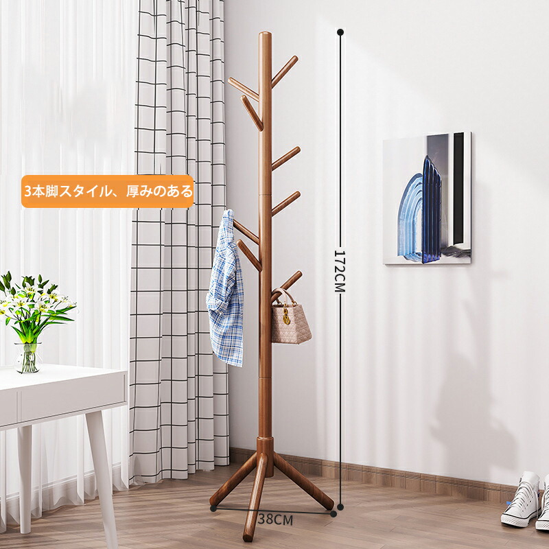 木製 コートハンガー ハンガーラック コート掛け かばん掛け 帽子掛けスタンド 枝型設計 組立て簡単 省スペース 安定性 収納力抜群 頑丈 衣類収納 玄関収納 移動 オフィス シンプル スリム
