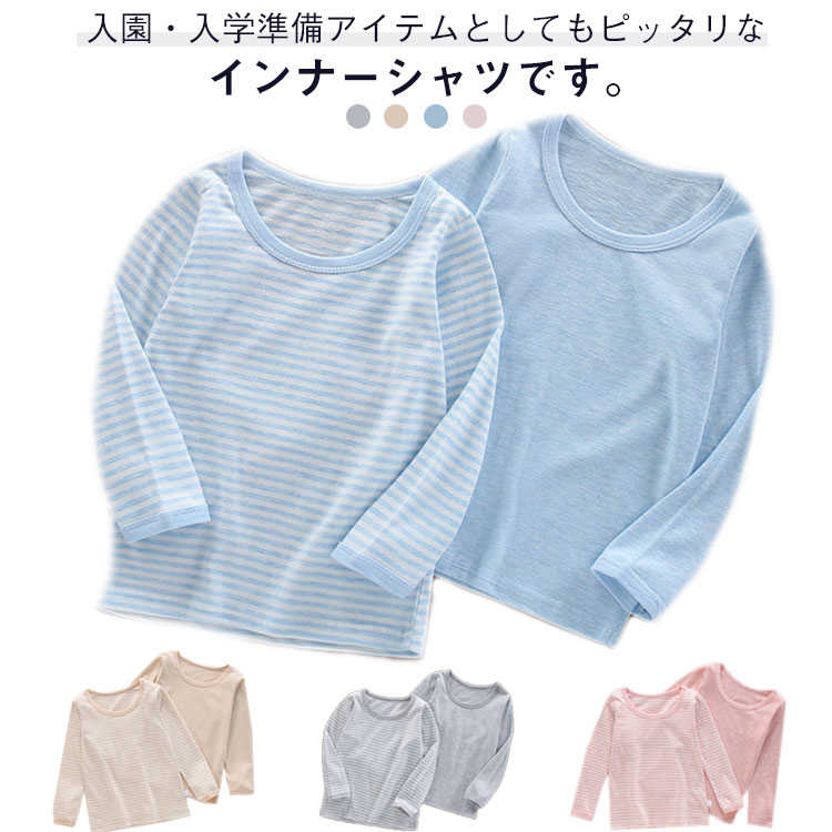 キッズ 女の子 クールネック 春夏秋 インナーシャツ 2枚組 薄手 男女兼用 長袖 インナー 通気性 無地 トップス 丸首 Tシャツ 120 肌着 ジュニア 男の子 130 100 110 子供 90