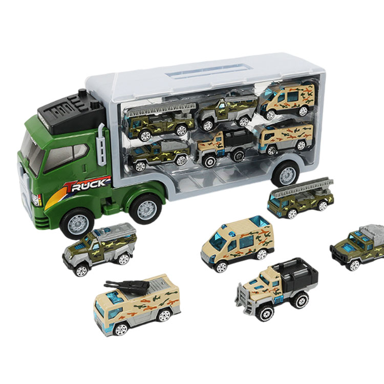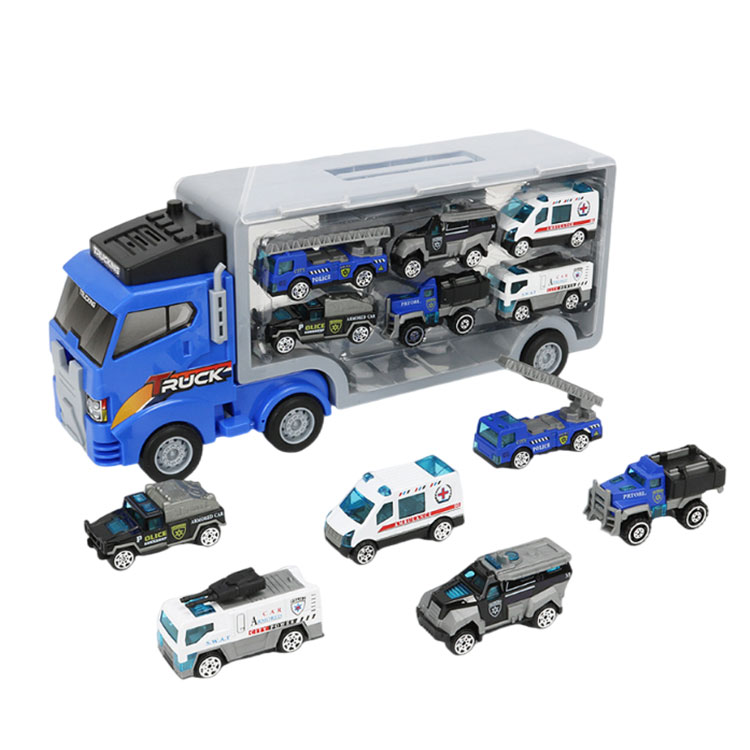 1台収納車 6台ミニカーセット 車おもちゃ 運搬車 働く車 工事カー 赤 はたらくくるま 合金 作業車両 火事車 警察車 ミリタリー車 男の子 室内遊び キッズ 幼稚園 乗り物 キャリアカー 小学生