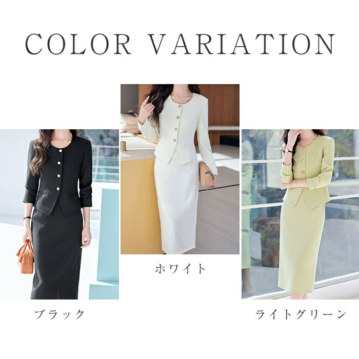 スカートスーツ セットアップ レディー レディースファッション 早い者勝ち ブラック ホワイト ライトグリーン S M L XL 2XL 3XL