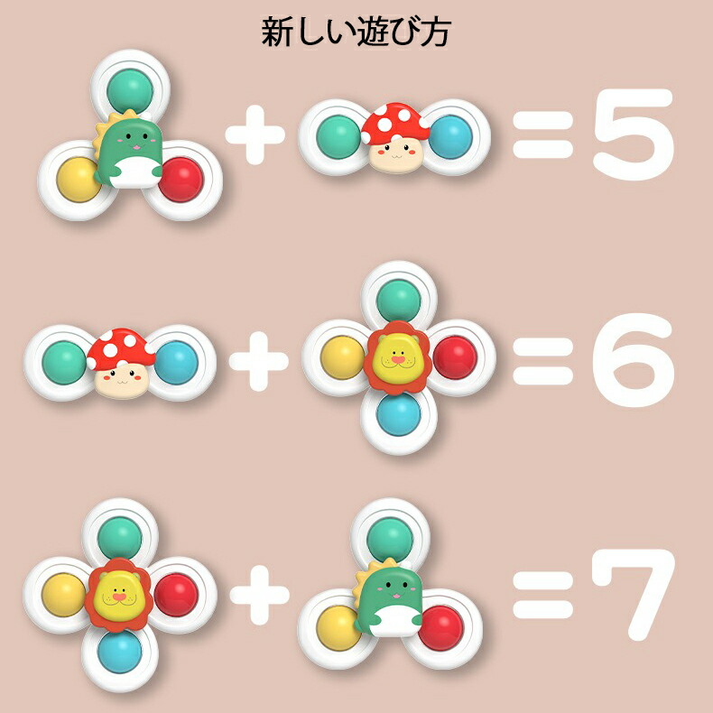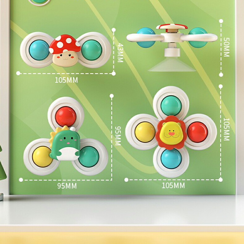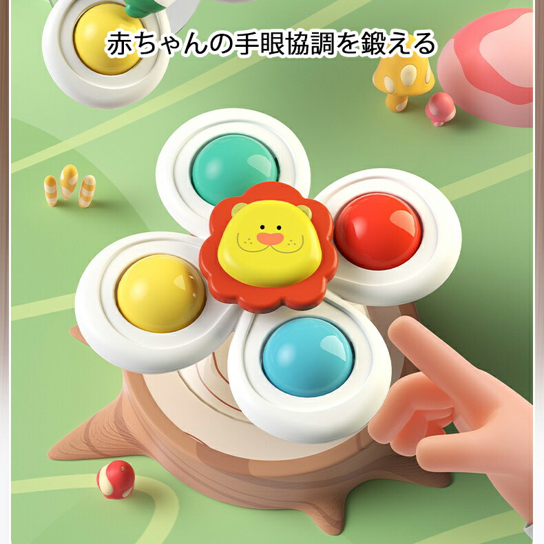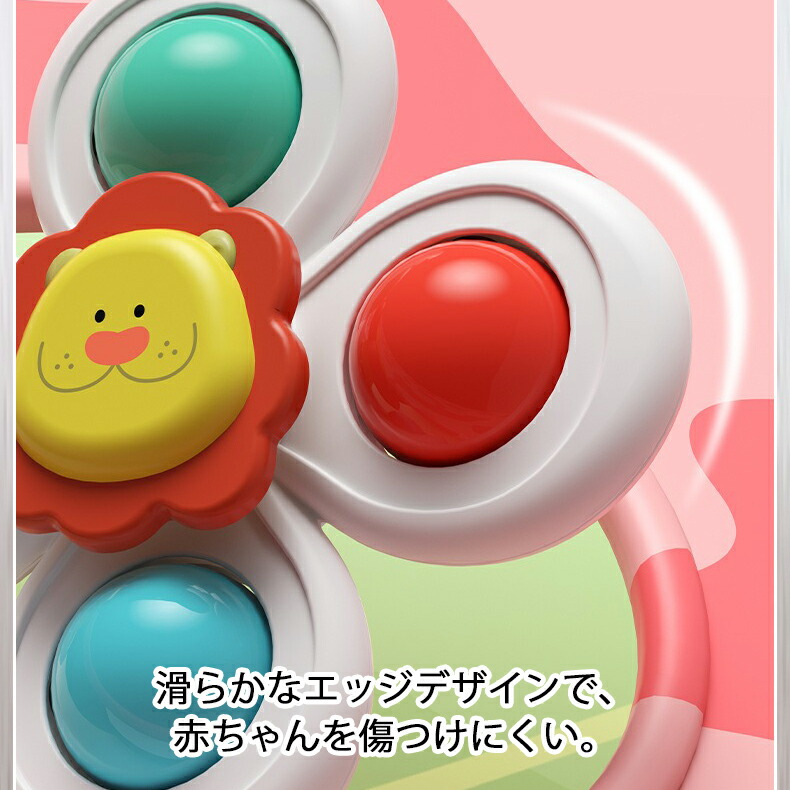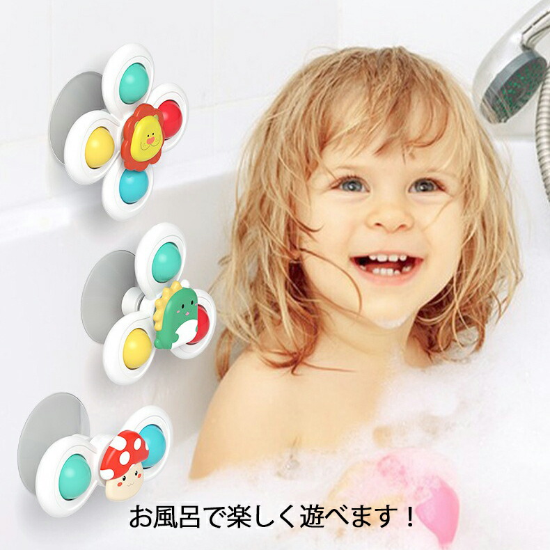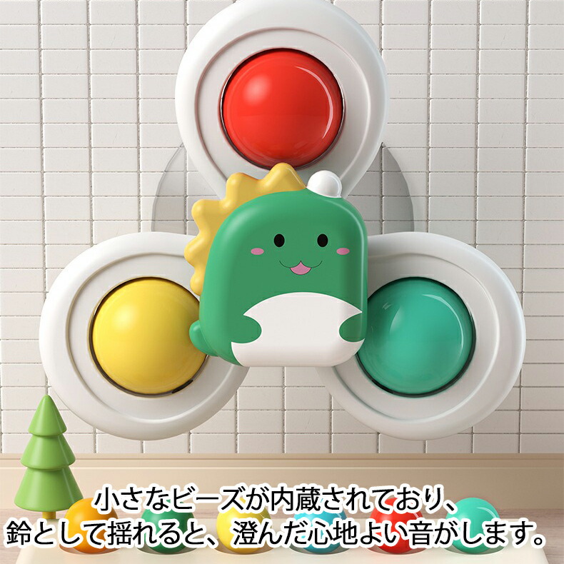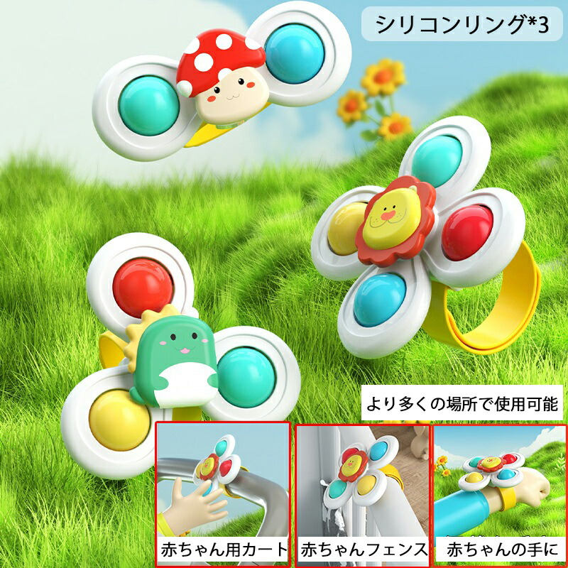 ハンドスピナー 吸盤付き 3個セット 赤ちゃん おもちゃ 0歳 6か月 1歳 2歳 3歳 4歳 男の子 女の子 知育 風車おもちゃ カラカラ 音が鳴る お出かけ お風呂 水 リング付き