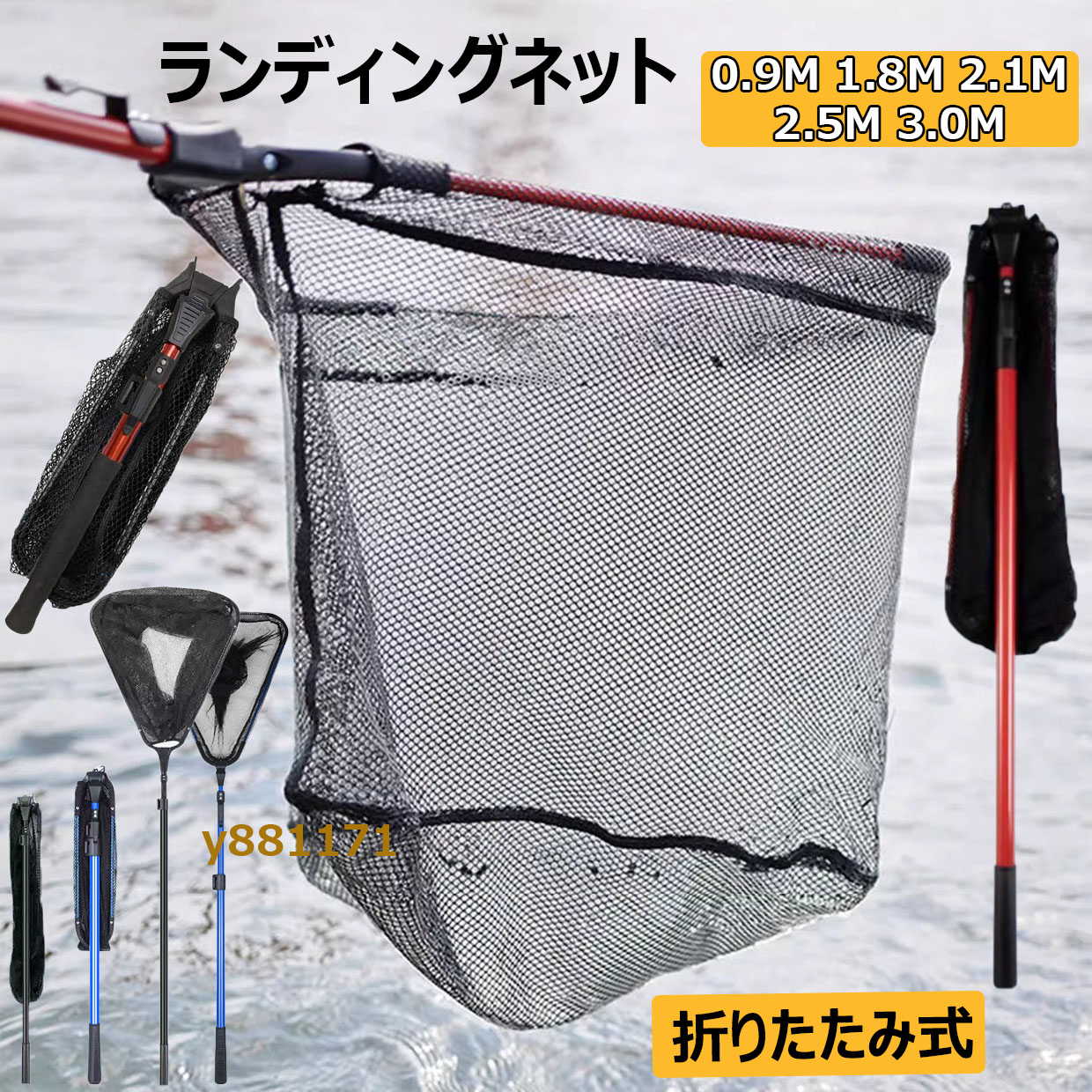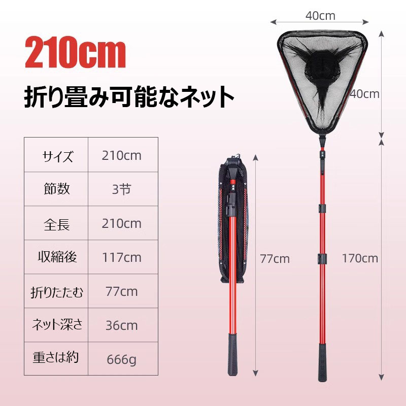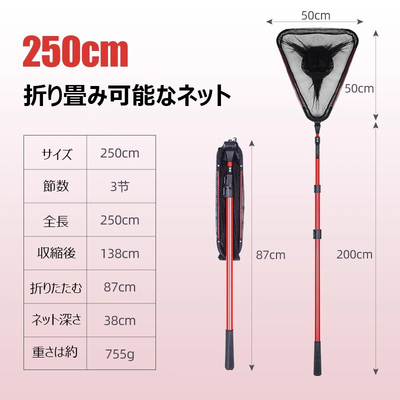 玉網 たも網 ランディングネット 折り スポーツ アウトドア 早い者勝ち レッド ブルー ブラック 90cm 180cm 210cm 250cm 300cm