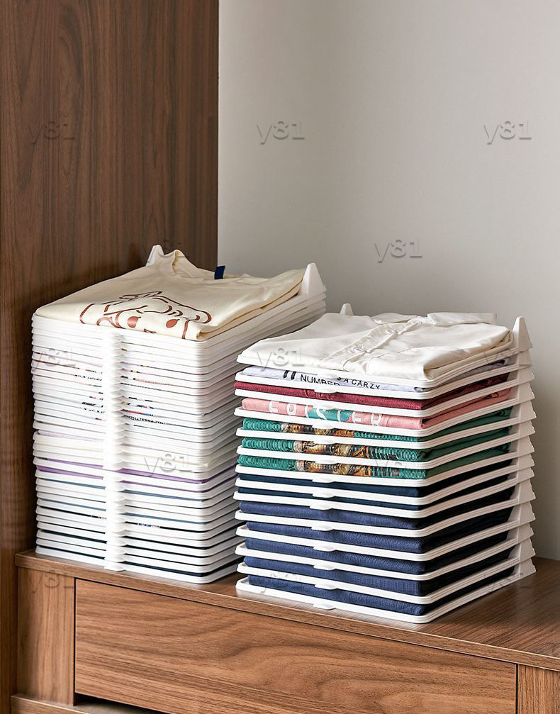 【機能紹介】この折り畳み板を利用して、男性も子供も数秒内に服装をきちんとに折り畳んで書類のように立てて収納できます。着たい服を一目で分かって楽に取り出せます。通常の積み重ねている洋服を荷崩れるシーンをご心配しないでください。サイズ:32×25×4cm 材質:PP材。