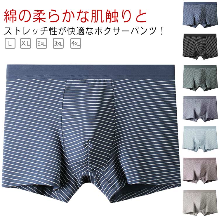 ボクサーパンツ 2枚セット メンズ ボクサーブリーフ パンツ ローライズ 下着 インナー アンダーウェア ボーダー柄 綿 無地 男性用 通気性 蒸れにくい 快適 ストレッチ