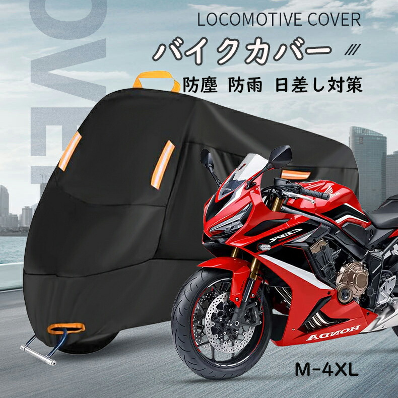 バイクカバー 210D 厚手 車体カバ ブラック ブラックオレンジ M L XL 2XL 3XL 4XL