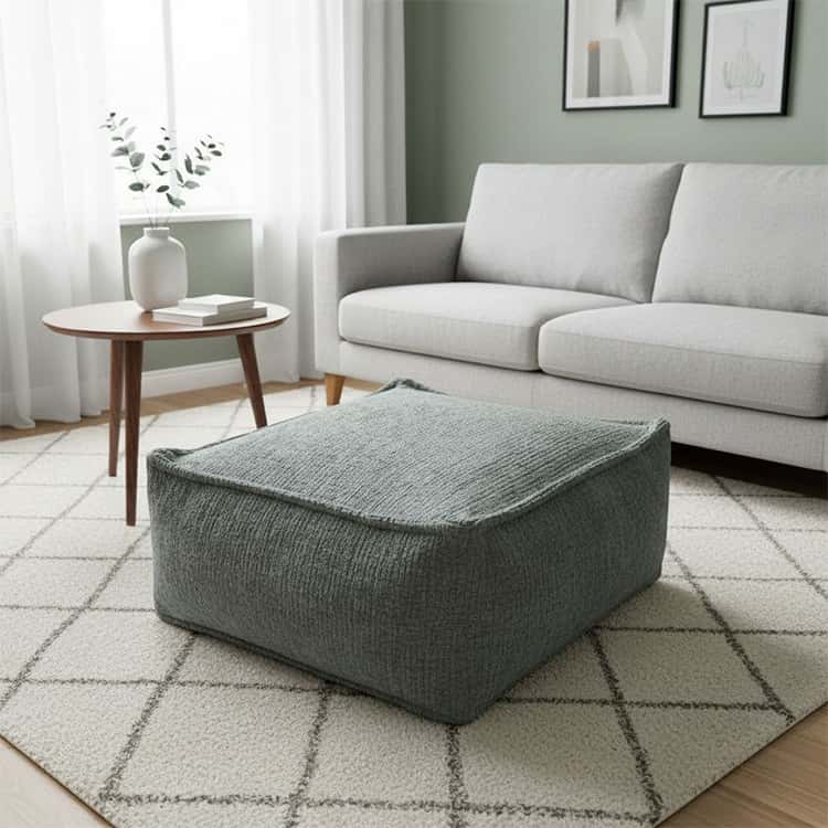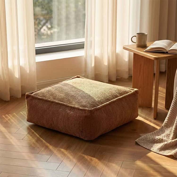 幅45×奥行45×高さ23cmのスクエア型で、座布団や背当てクッションとしても使いやすいサイズ感。