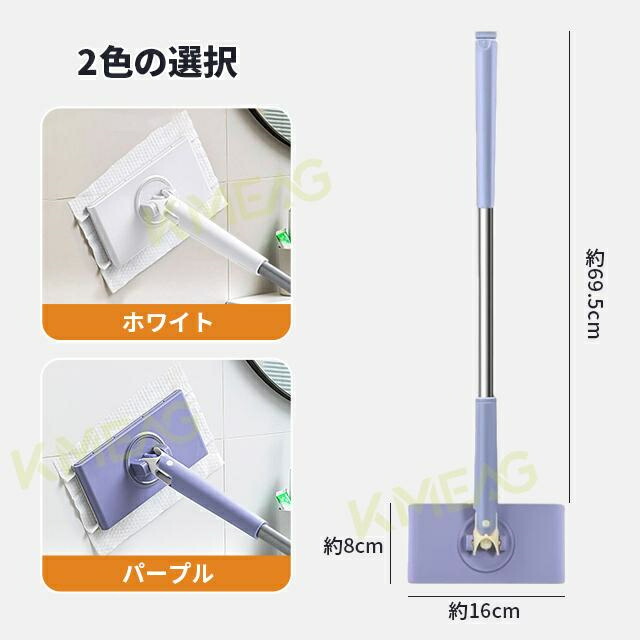 自動雑巾挟みモップ 乾湿両用 フローリ 日用品雑貨 文房具 手芸 人気 ホワイト パープル 70cm 93cm