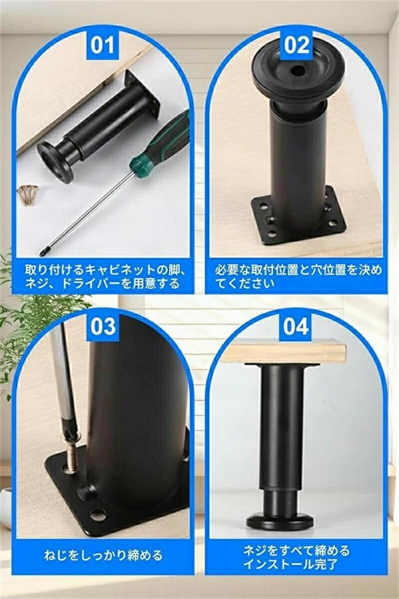 テーブル 脚 DIY 4個セット 家具 ブラック ホワイト 8cm-12cm 12cm-18cm 18cm-30cm 25cm-42cm