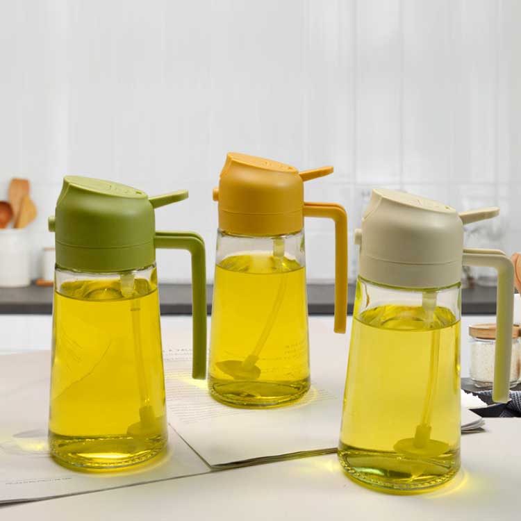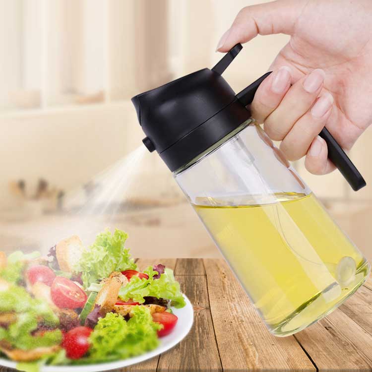 オイルスプレー 4本セット 液だれしない オイルボトル 油ポット 霧吹き ノンフライヤー 470ml スプレーボトル 2way ガラス 料理用 オイル差し 透明 キッチン用品 油さし