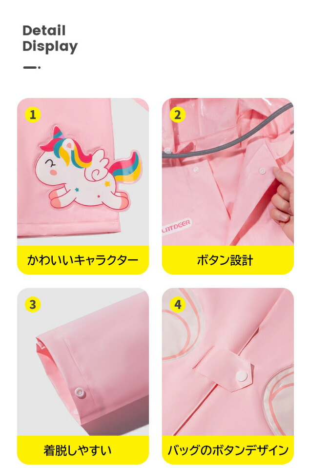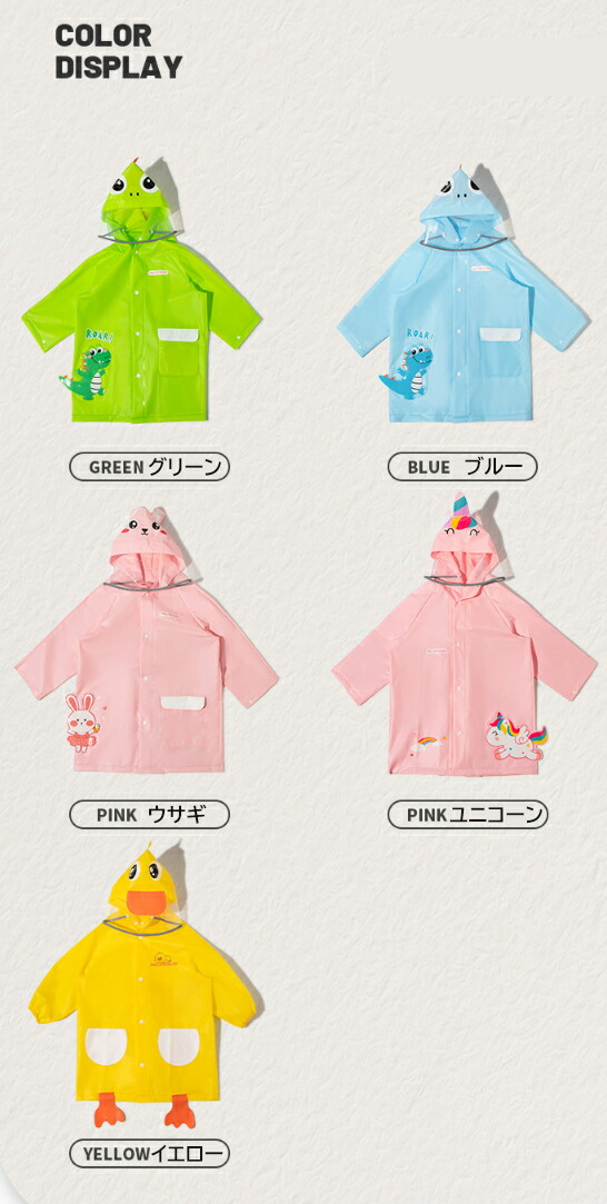 レインコート キッズ 子供 レインスー キッズ ベビー マタニティ 通販 ブルー グリーン イエロー ウサギ ユニコーン S M L XL 2XL 3XL 4XL