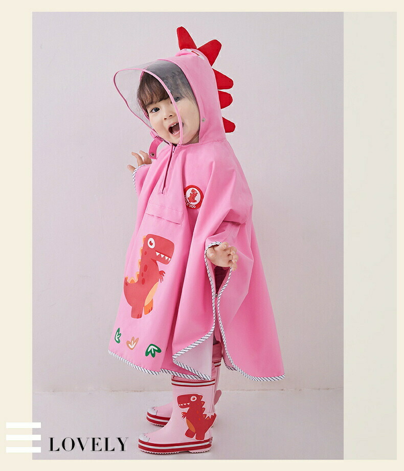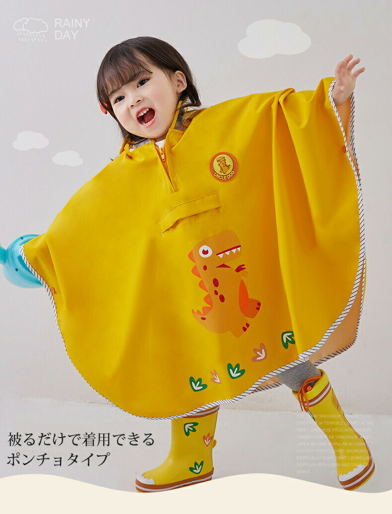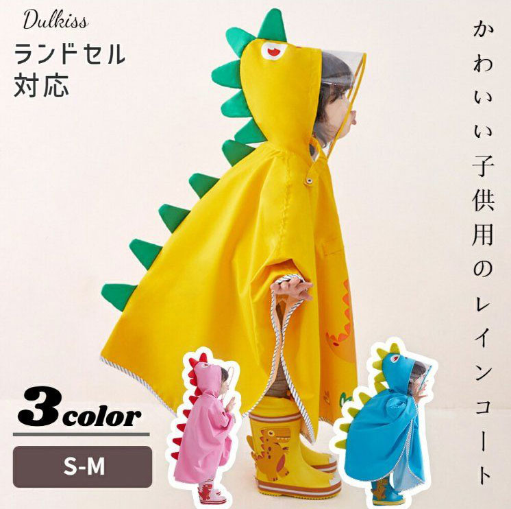 レインポンチョ 恐竜 キッズ ポンチョ イエロー ピンク ブルー S M