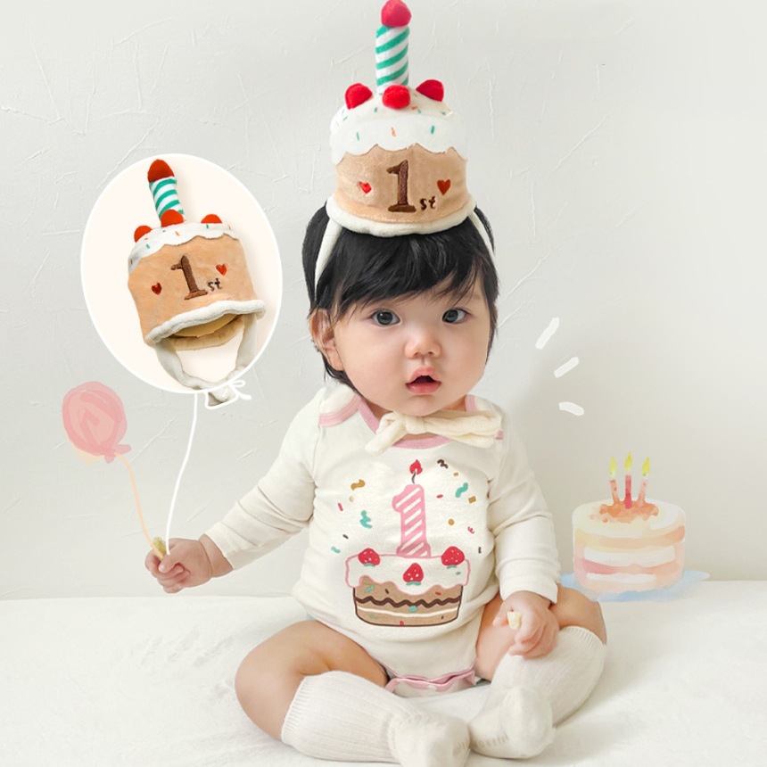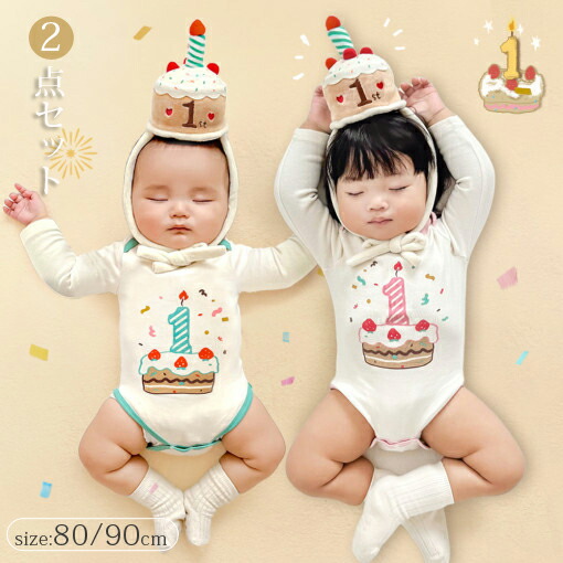 ベビー ロンパース 誕生日 バースデー ハット 2点セット 長袖 男の子 女の子 カバーオール 子供服 赤ちゃん パーティ― パーティーハット 1歳 こども 新生児 出産祝い ギフト 子ども