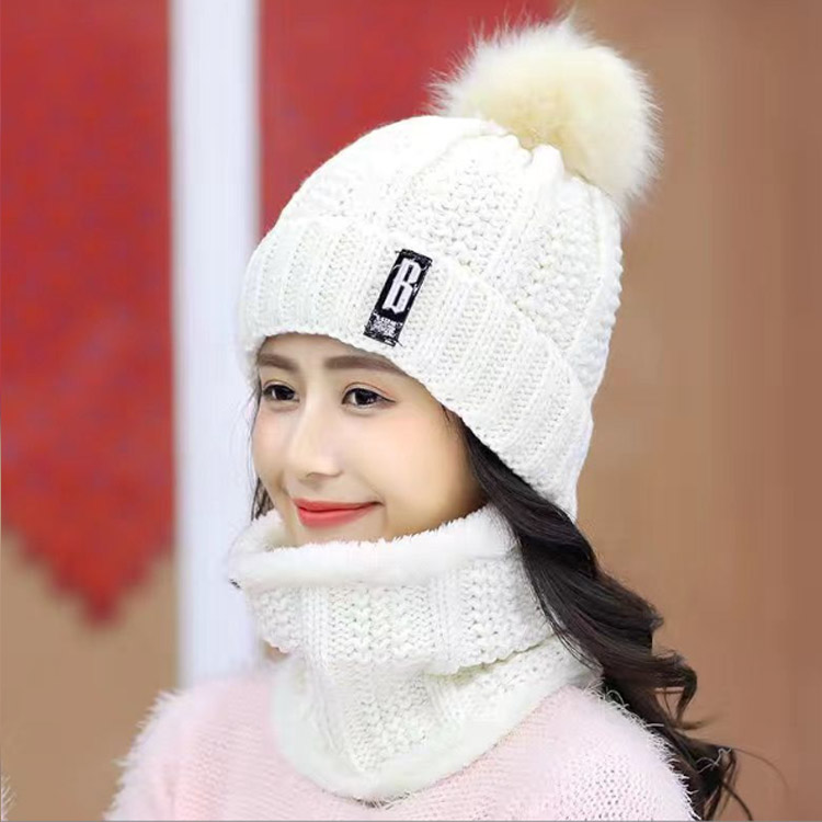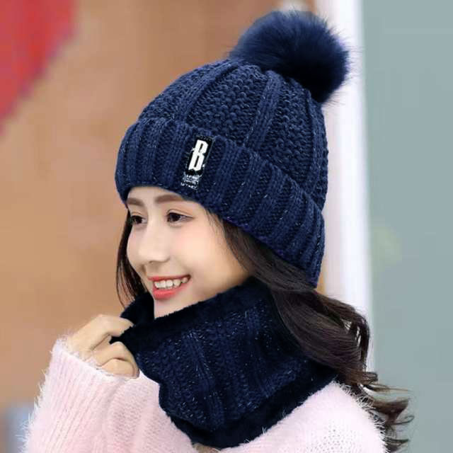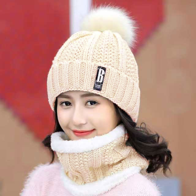 大きめボンボンが可愛いふかふかニット帽とネックウォーマーの2点セット
