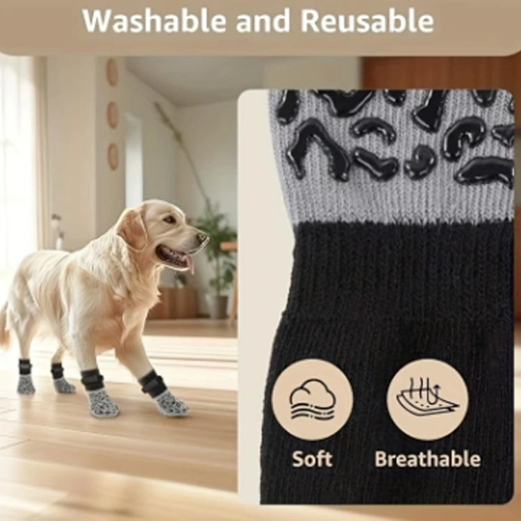 静音 伸縮性 ペット用靴下 綿製 履かせやすい 小型犬 4足セット 犬用靴下 室内用 大型犬 ブラック 脱げない M 通気性 S 保護 滑り止め XL 足舐め 肉球 中型犬 ペット 防止
