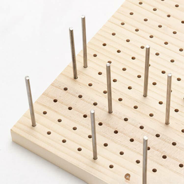 ボードの目盛やサークルを目安として結ぶ事でしっかりと編みこむことが出来ます。