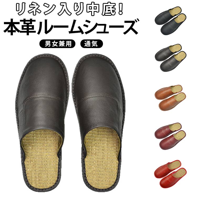 リネン入り中底 ルームシューズ 本革 レディース メンズ 室内履き ルームスリッパ レザー 部屋履き 業務用 来客用スリッパ サンダル 職場 スリッパ シンプル すべらない 上履き 無地 ユ 疲れない