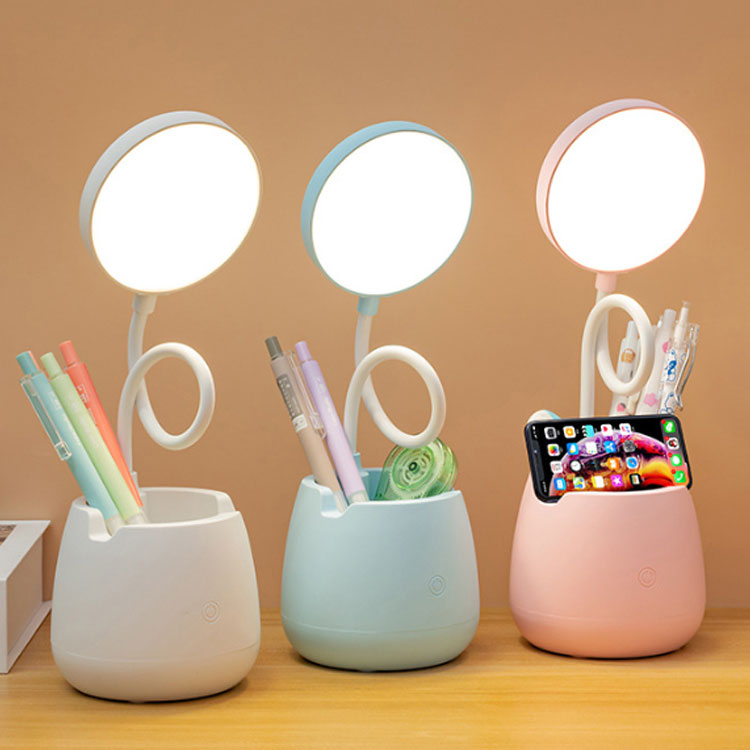 ライト+ペン立て+携帯スタンドの 3in1 デザイン