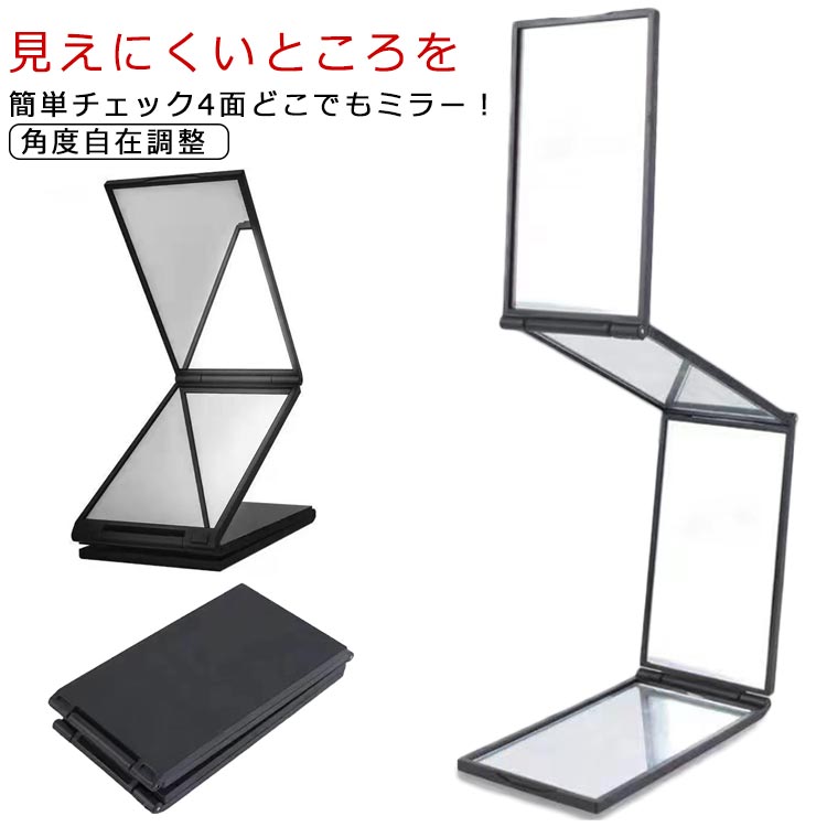 4面どこでもミラー 鏡 スタンドミラー 4面ミラー ハンドミラー 4面鏡 コンパクト 折りたたみ 化粧鏡 卓上ミラー ハンディミラー ヘアチェック ヘアカラー 頭頂部 つむじ うなじ 襟足 白 後頭部