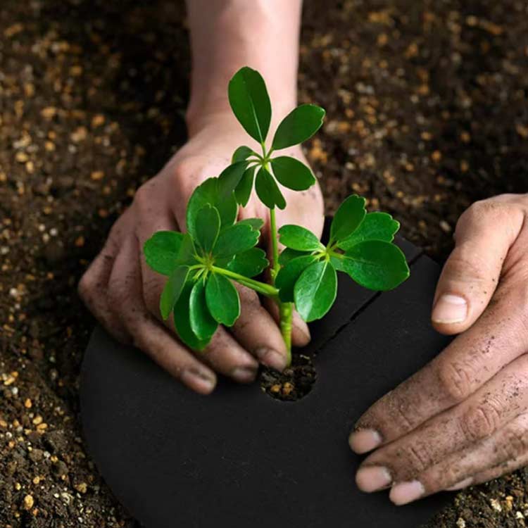 【ハサミでカットもできる】中央の穴の部分に合わせて植物の苗を植えてください。サイズが合わない場合はハサミでカット可能。
