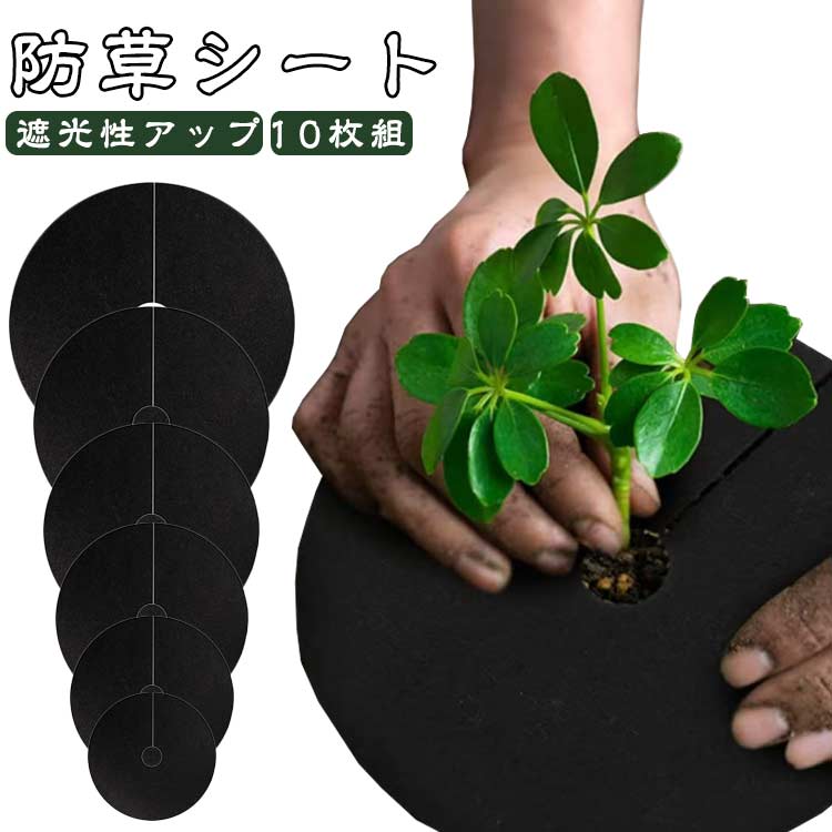 防草シート 10枚組 除草シート 不織布 植木鉢 穴あり 円形 園芸用シート 防草 雑草防止 厚手 高透水 通気性 農業 園芸用 菊栽培 庭園 家庭菜園 果樹
