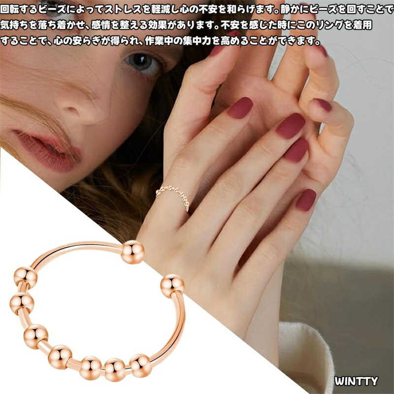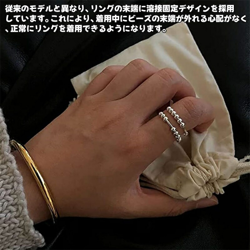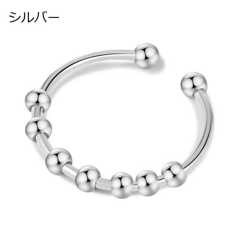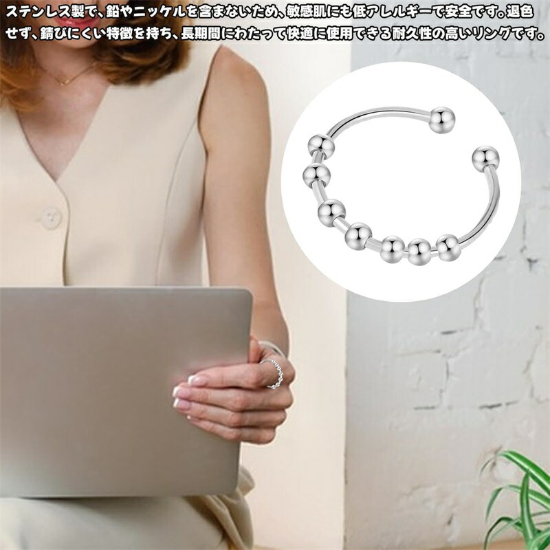 ストレス解消 リング ステンレススチール ビーズ付き リングスピナー 可動ランナー ジュエリー 調節可能 回転 男女兼用 ユニ