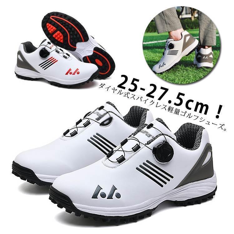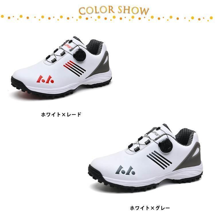 ゴルフシューズ 赤 メンズ ダイヤル式 ゴルフ シューズ メンズシューズ 特集 ホワイト*レード ホワイト*グレー 25cm 25.5cm 26cm 26.5cm 27cm 27.5cm