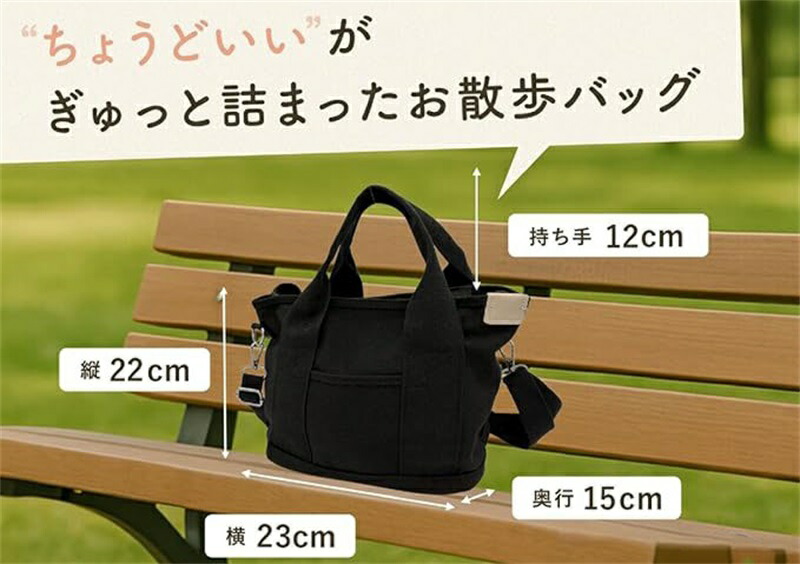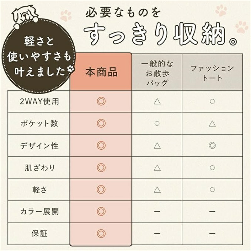 【ちょうどいいサイズのお散歩バッグ】 軽くてコンパクトなのに、必要な物はしっかり入る!毎日のお出かけに使いやすく、見た目もスマートです。