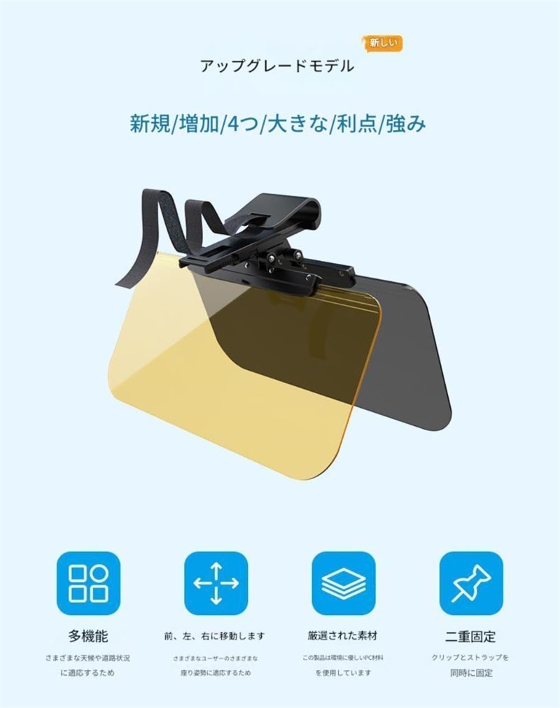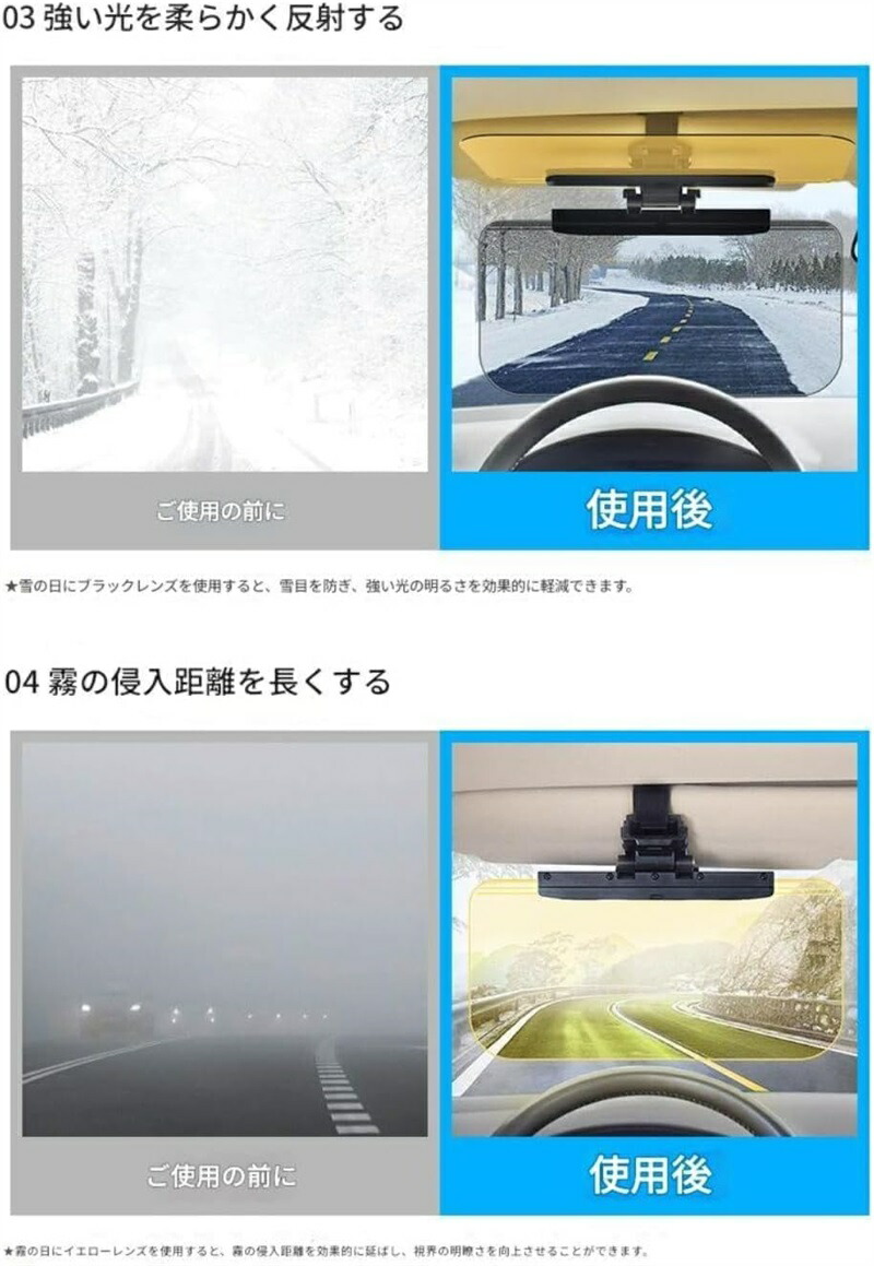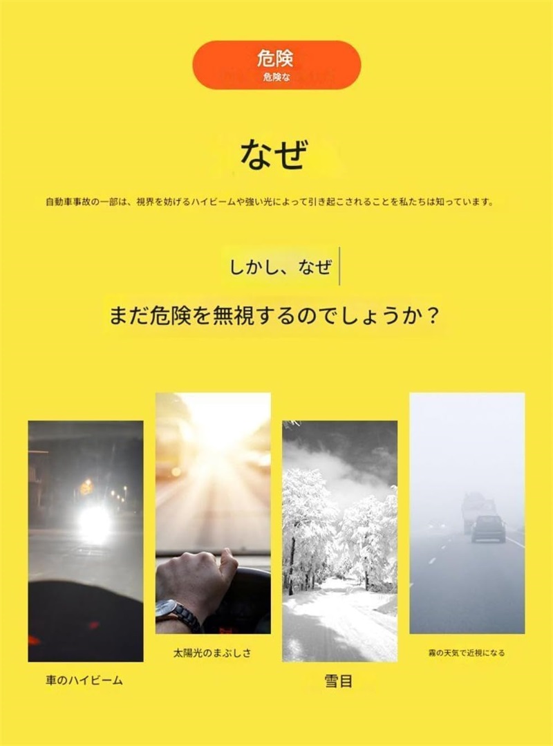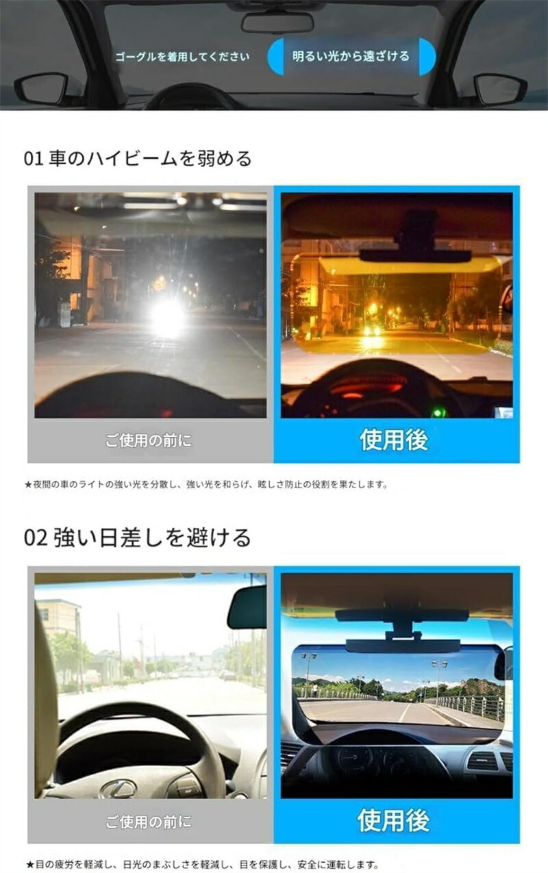 安全ドライブをサポート:眩しさによる視界不良を解消し、運転中の注意力散漫を防ぎ、昼間から夕暮れ時まで安定した視界を提供して安全運転に貢献します。