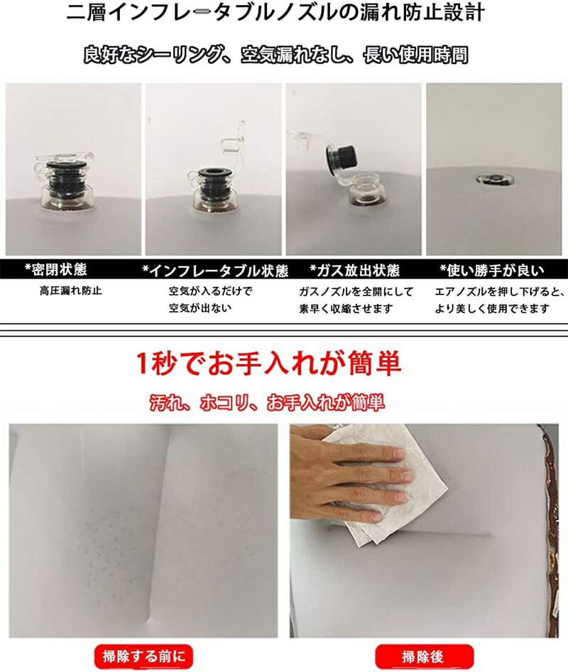 【耐用性と快適性】二重層の膨脹可能なノズルの漏出防止設計 強いシーリング、空気漏出無し、長い使用時間。通気性に素晴らしいと環境にやさしいPVC材料が作られ、安全で無臭です、肌に優しく、環境に優しいで作られています。波状の縞模様のデザインは快適さを向上させ。