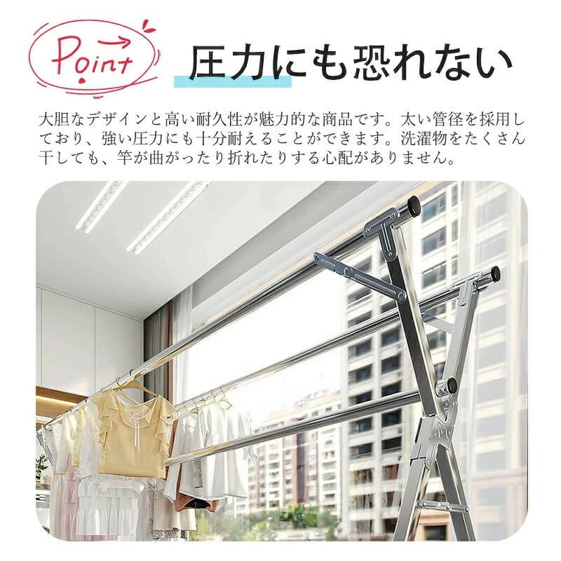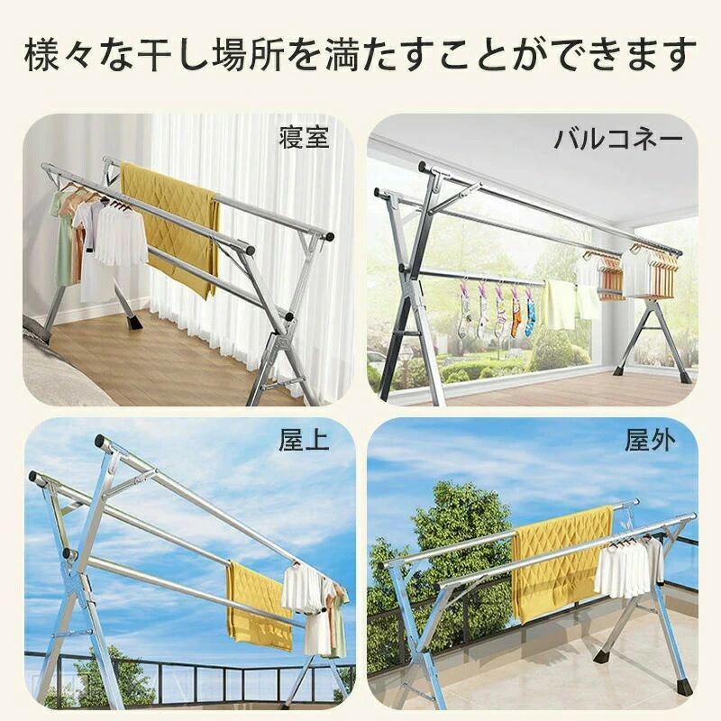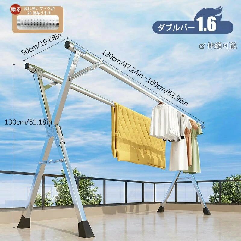 物干し ステンレス製 伸縮式多機能布団干し 物干しスタンド ダブルバータイプ 洗濯物干し X型 調整可能なダブルロッド 20本 折りたたみ