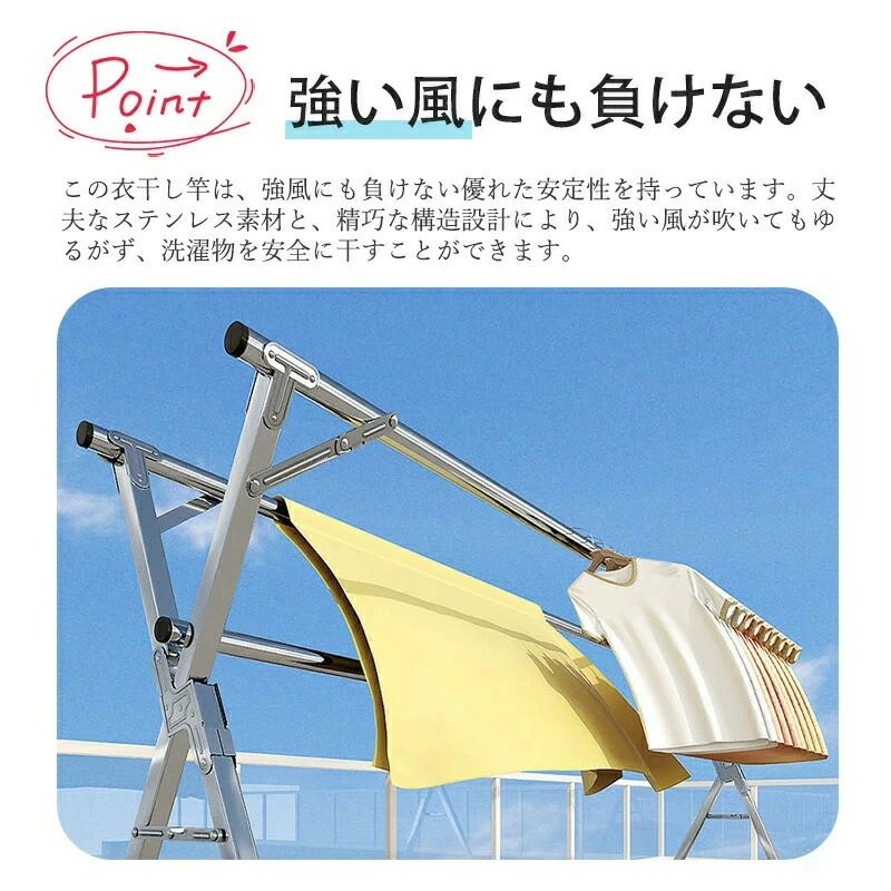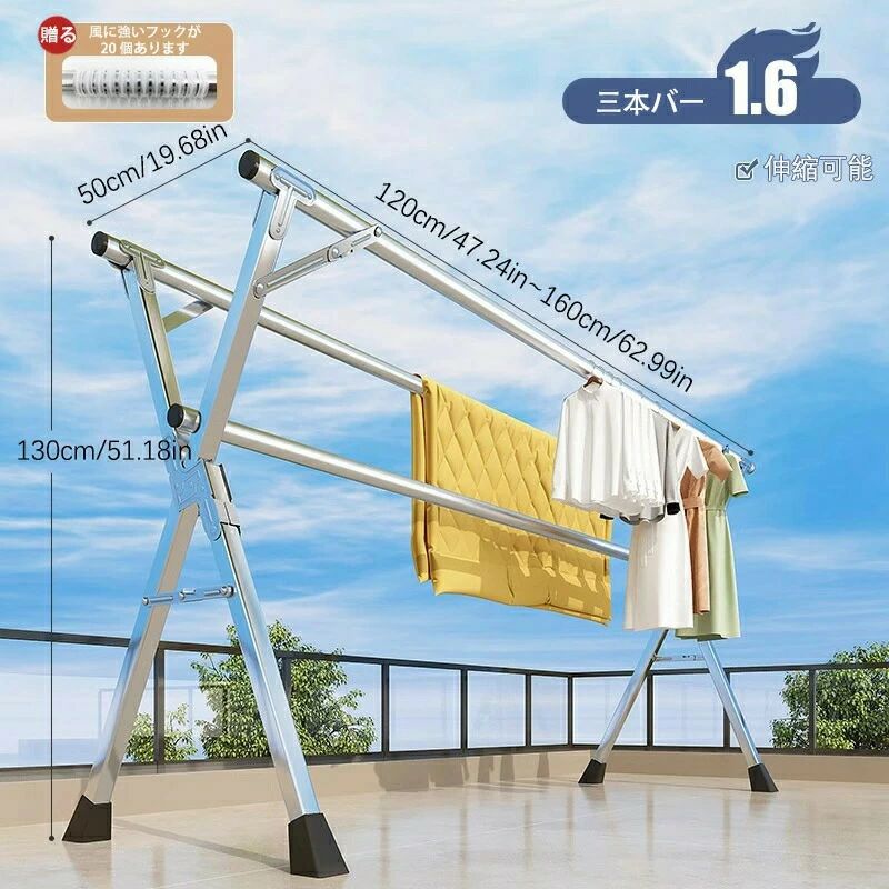 丈夫なステンレス素材と精巧な構造設計により、強風環境下でも洗濯物を安全に乾燥させることができます。屋外での使用も安心です。