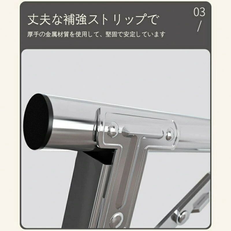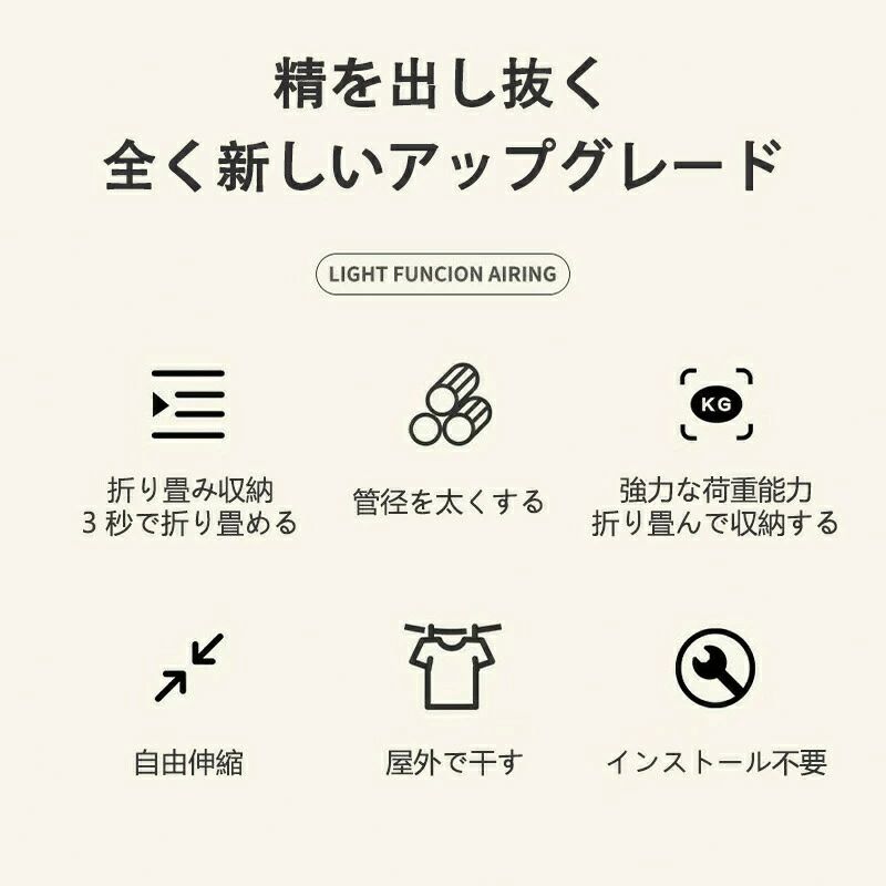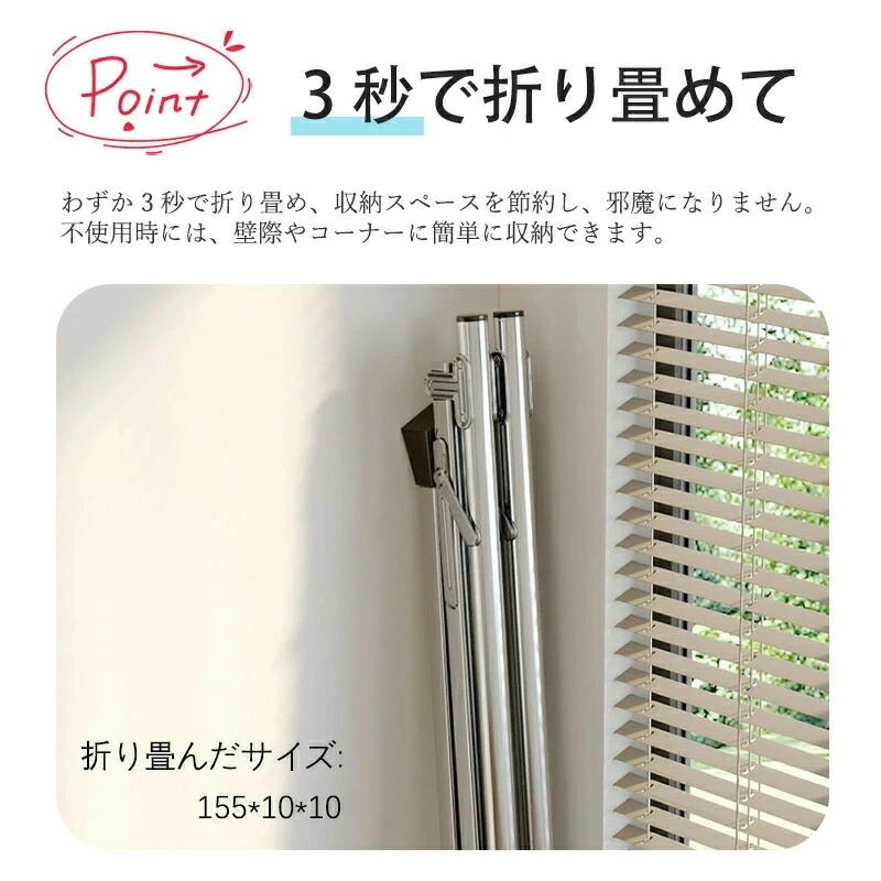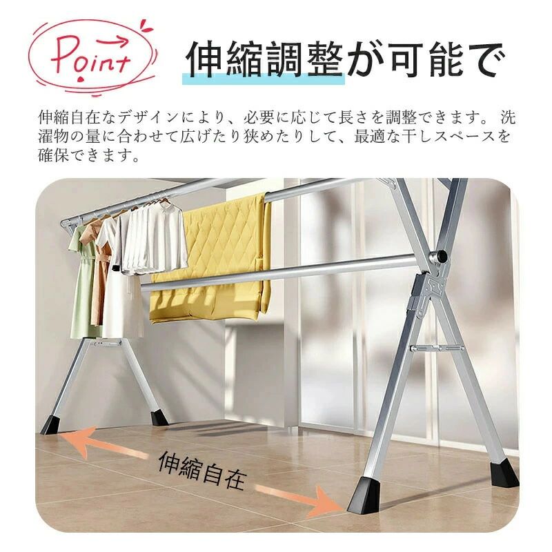 必要に応じて長さを調整可能で、服や布団、タオルなど幅広い洗濯物を安定して干すことができます。洗濯物の量に合わせて広げたり狭めたりし、最適な乾燥スペースを確保します。