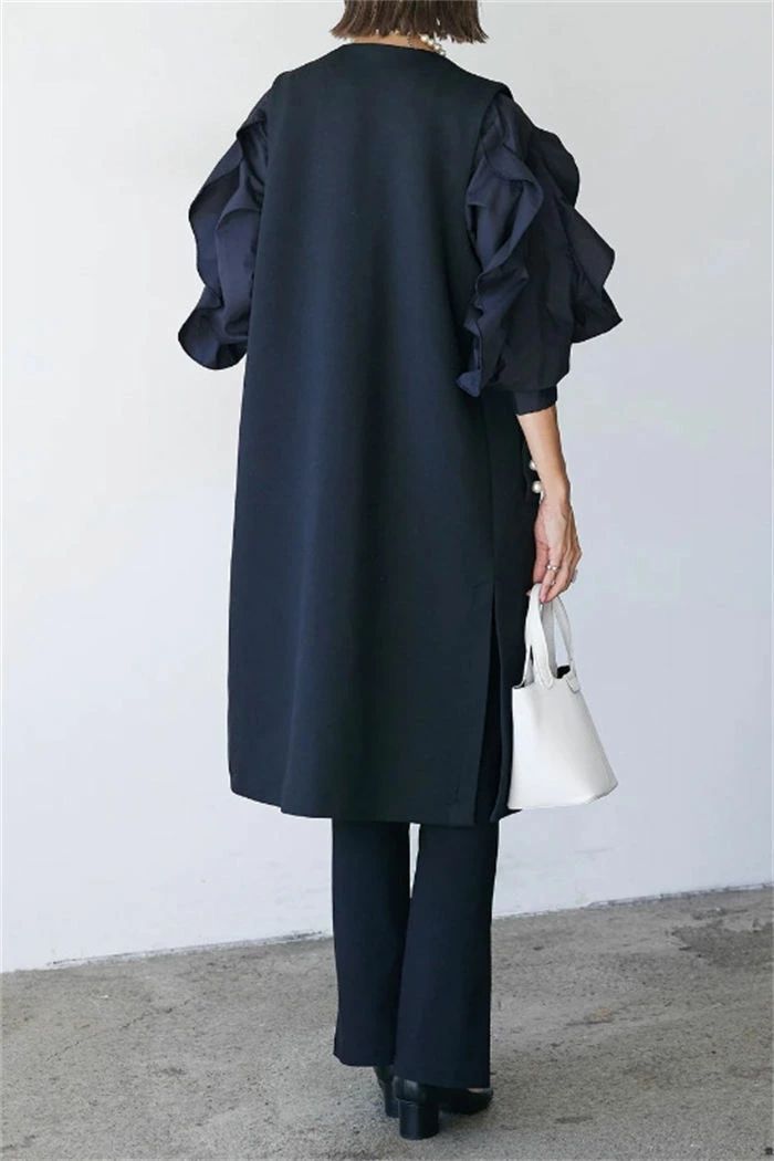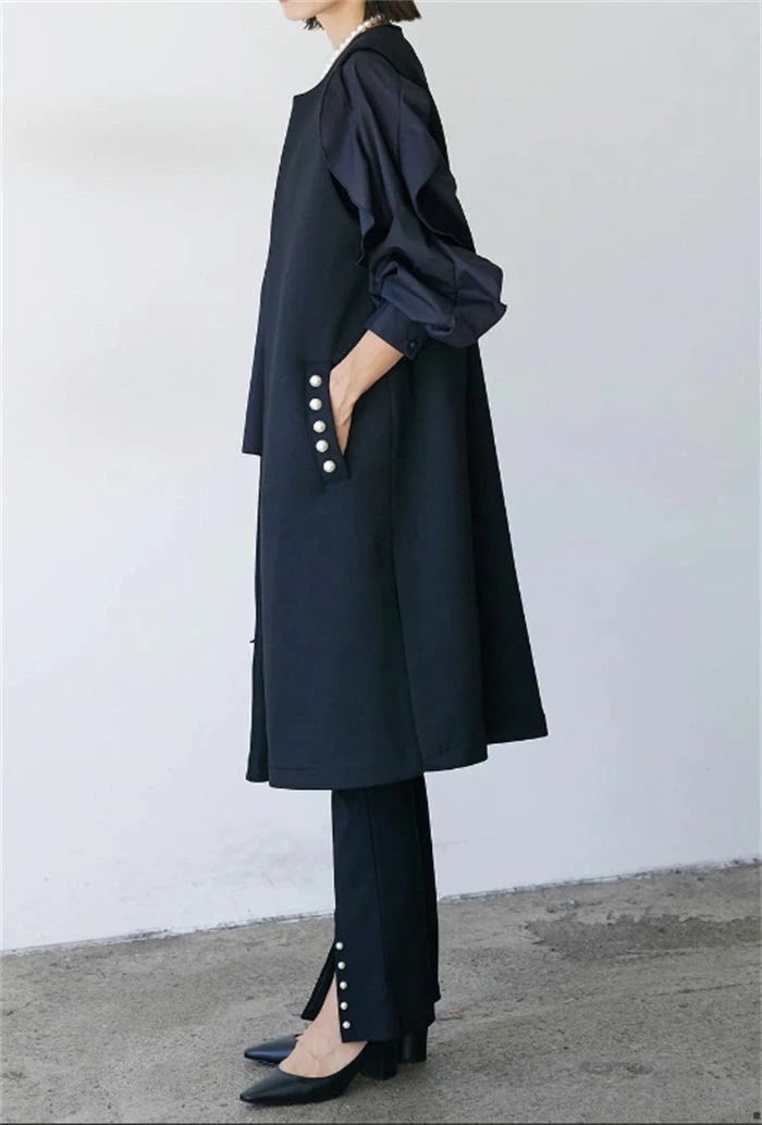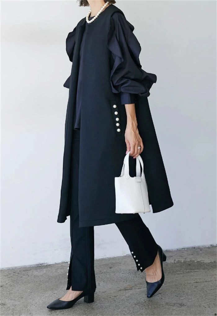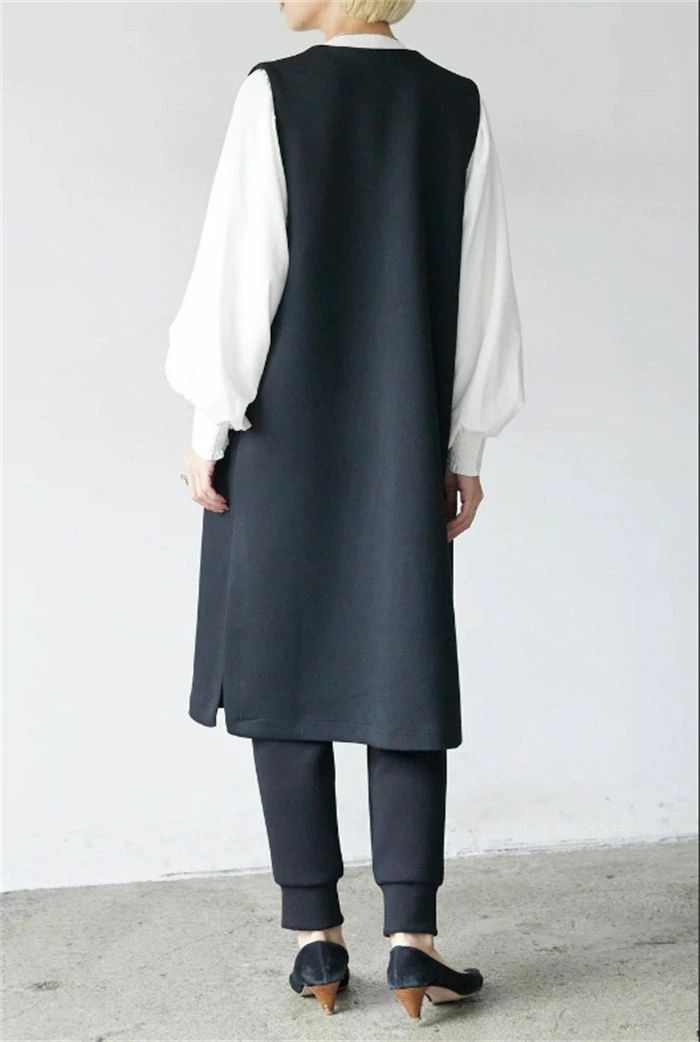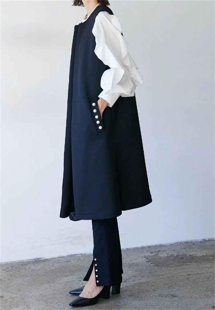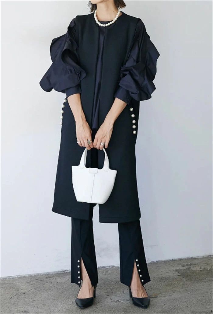 ジレ ベスト レディース フォーマル 春 秋 冬 ノースリーブ パール コート アウター ロングベスト ノーカラー 前開き 羽織 スーツ